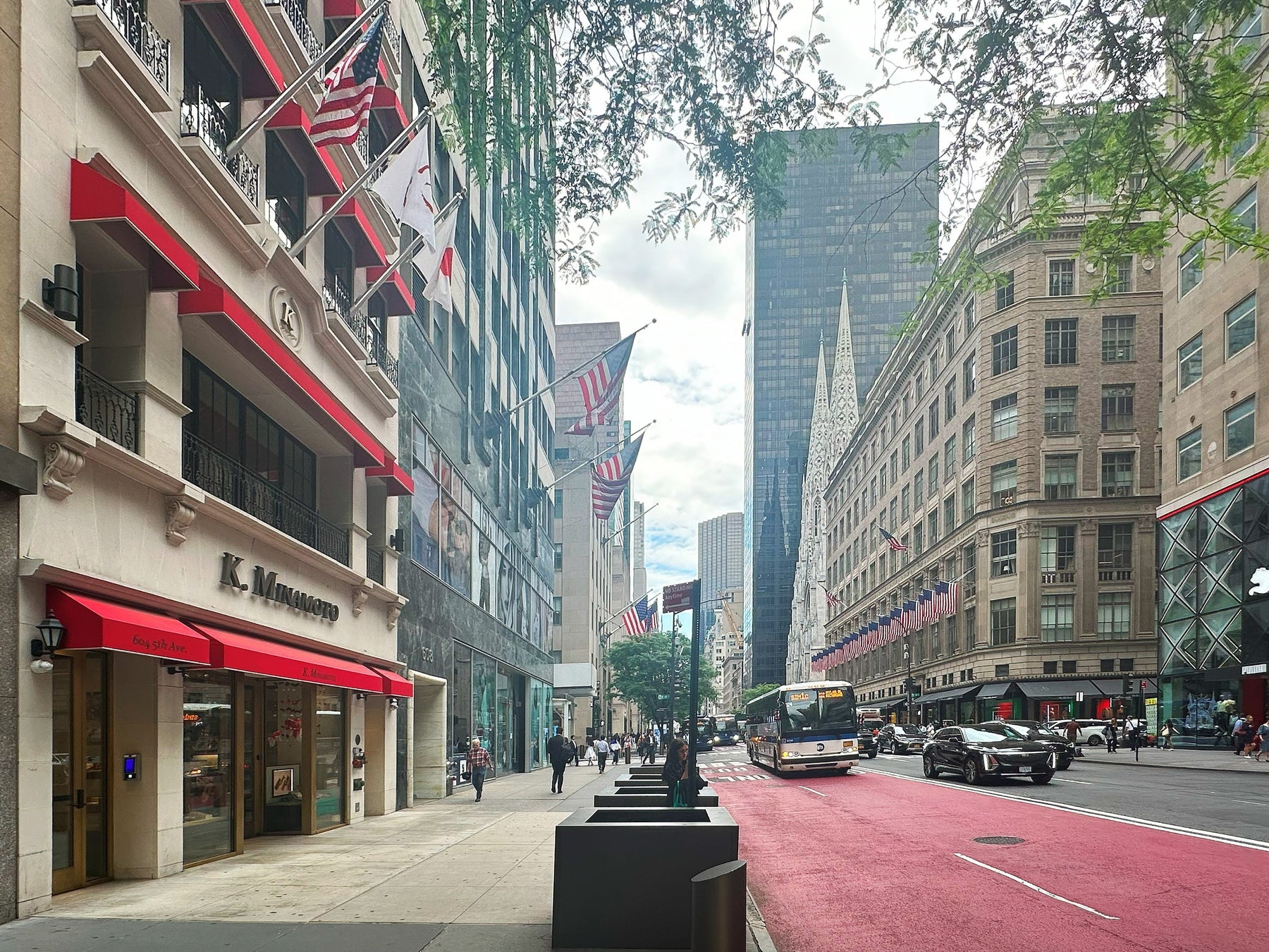 ニューヨーク5番街に位置する自社ビル1階にある、宗家 源 吉兆庵 5th Avenue New York店。世界中の有名ブランドが立ち並ぶ 5番街にはクリスマスツリーで有名な人気観光地ロックフェラーセンターや歴史あるセント・パトリック大聖堂、高級百貨店のサックス・フィフス・アヴェニューなどがあります。ニューヨークから、日本のお菓子の魅力をお届けしています。