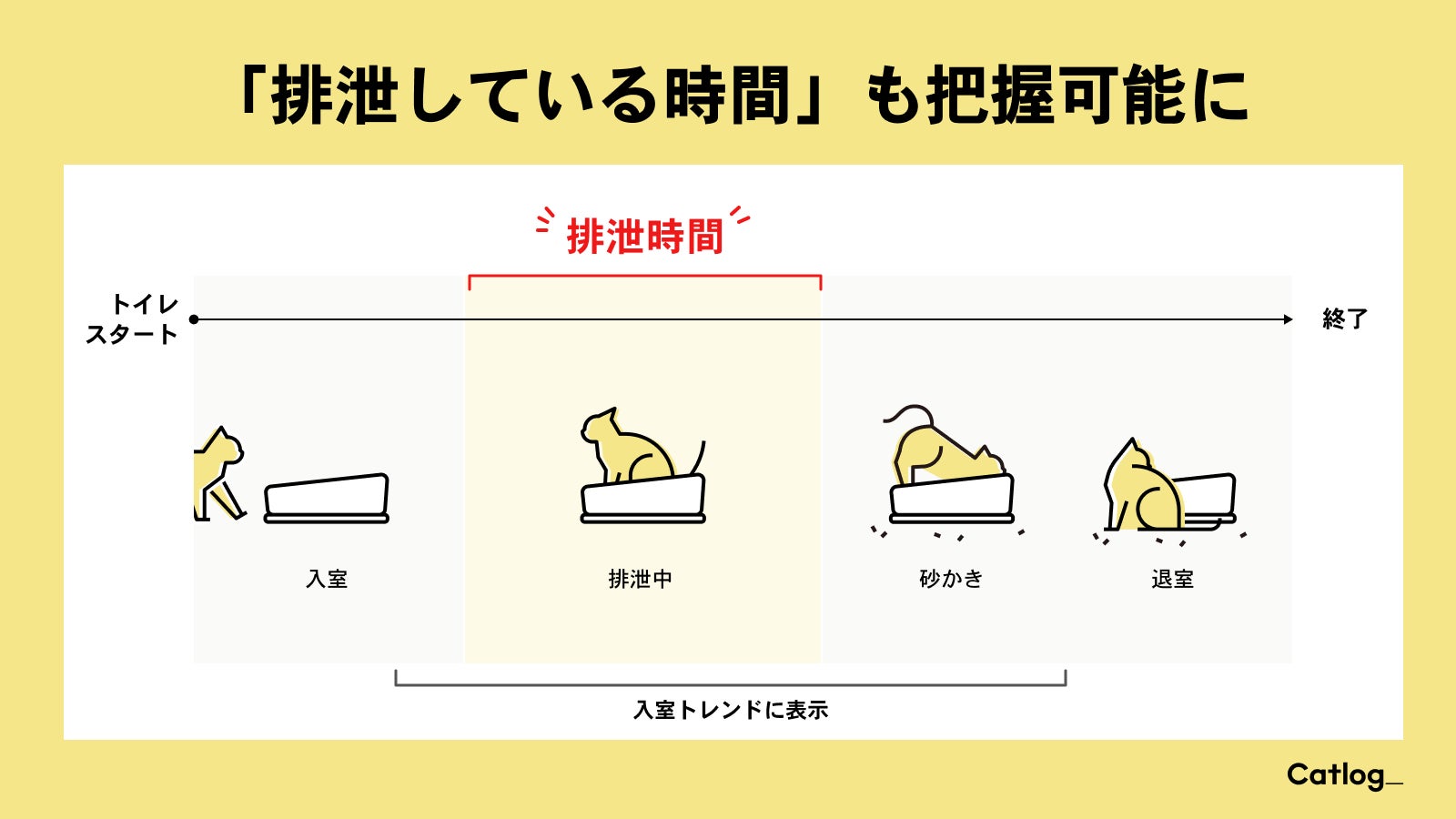 この新機能により、従来の”トイレに入っているか”や”排泄量”だけでなく、「出したいのに出ていない」状態の指標である”排泄時間”を可視化することで、便秘や尿道閉塞などの重大な疾患につながる可能性を早期に検知することが可能になります。