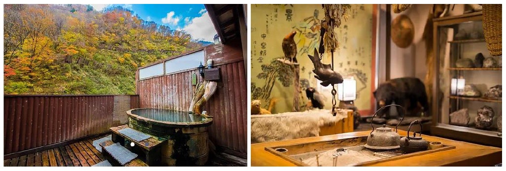 春は早苗がそよ風になびき、夏には新緑がまばゆく、秋の夕べに刈田の赤とんぼ、冬は湯けむりがただよう雪景色など、四季折々の里山の風景をお愉しみいただけます。
