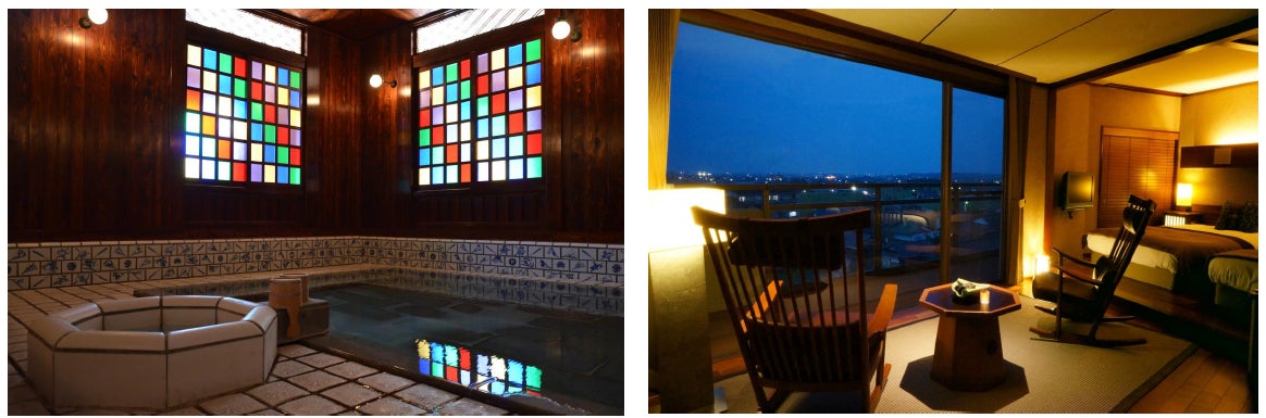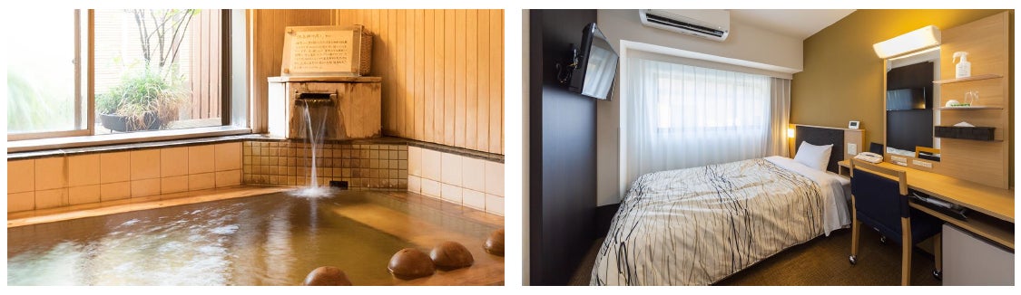 日替わりで趣の異なる2つの大浴場「白山の湯」、「手取の湯」があり、お部屋着のままお越しいただけます。また、どちらの浴場にもサウナが付いています。館内ではお食事処やリフレクソロジーなどのボディケア、理容室などもあり、ゆっくりとした1日を過ごすことができます。