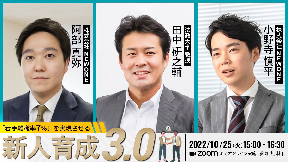 エンゲージメント向上を軸とした組織開発・人材育成コンサルティング支援を行う株式会社NEWONE(本社:東京都千代田区 代表取締役:上林周平、https://new-one.co.jp/ 以下、NEWONE)は、「新入社員の育成・キャリア開発にお悩みを抱えるご担当者様」に向けて、プロティアン・キャリアの第一人者でもある田中研之輔氏から「キャリア自律の観点から見るこれからの時代に求められる新入社員育成のあり方」について講演いただくオンラインセミナーを開催いたします。