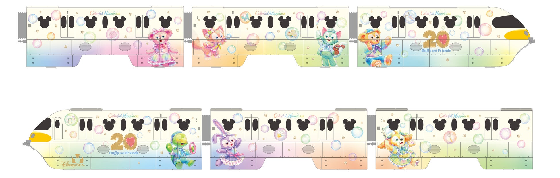 東京ディズニーシー®で開催されるスペシャルイベント「ダッフィー&フレンズ20周年:カラフルハピネス」をテーマに、ディズニーリゾートラインでは、ダッフィー&フレンズの優しさと幸せを色鮮やかに表現するラッピングモノレール「ダッフィー&フレンズ・カラフルハピネス・ライナー」を期間限定で運行します。