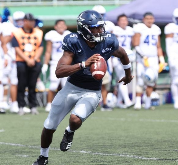 空中戦をマネージメントするのは新加入 QB デイビッド・ピンデルだ。肩が強く、クイックなスローイングモーションから正確なパスを繰り出す。同じく新入団の WR デビン・フェルプス、内田大喜、近藤天晴らにパスを投げ分ける。