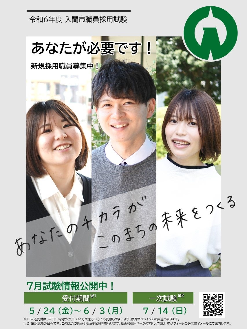 令和6年度入間市職員採用試験【事務、土木、建築、電気、機械】申し込みスタート