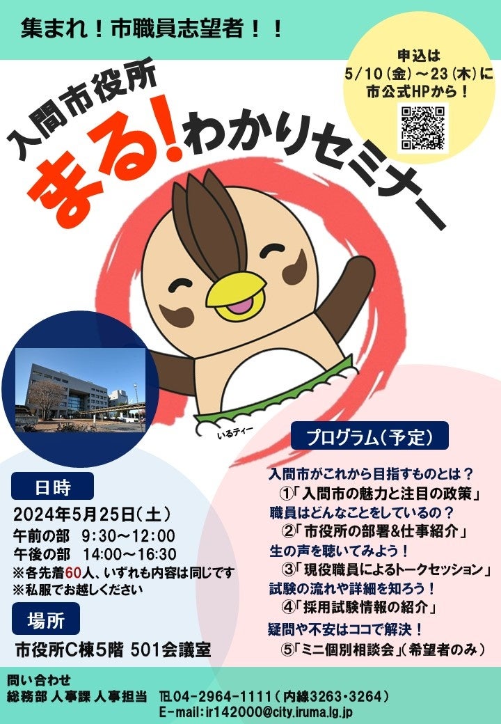 【埼玉県入間市】令和6年度入間市職員採用試験の申し込みスタート!入間市役所まるわかりセミナー&インターンシップの最新情報!