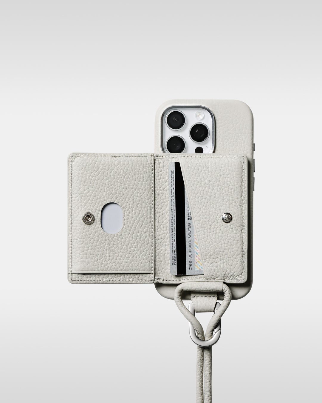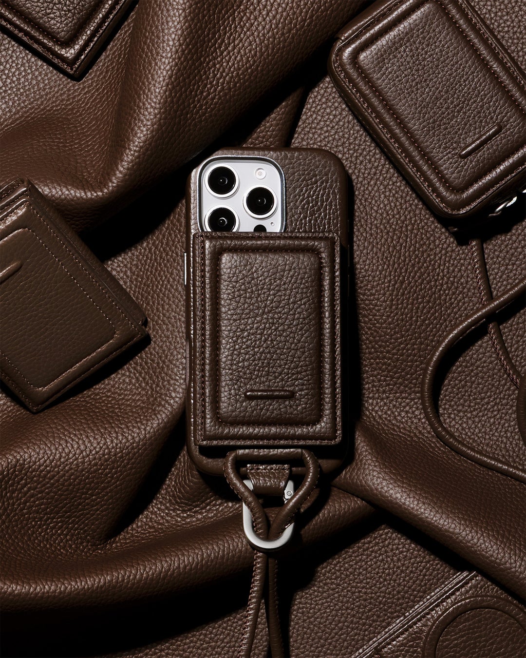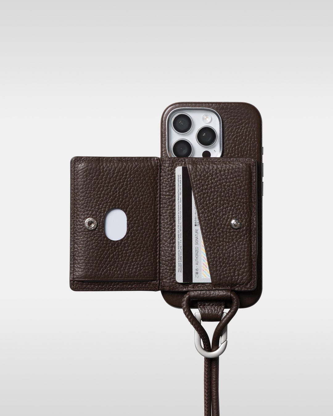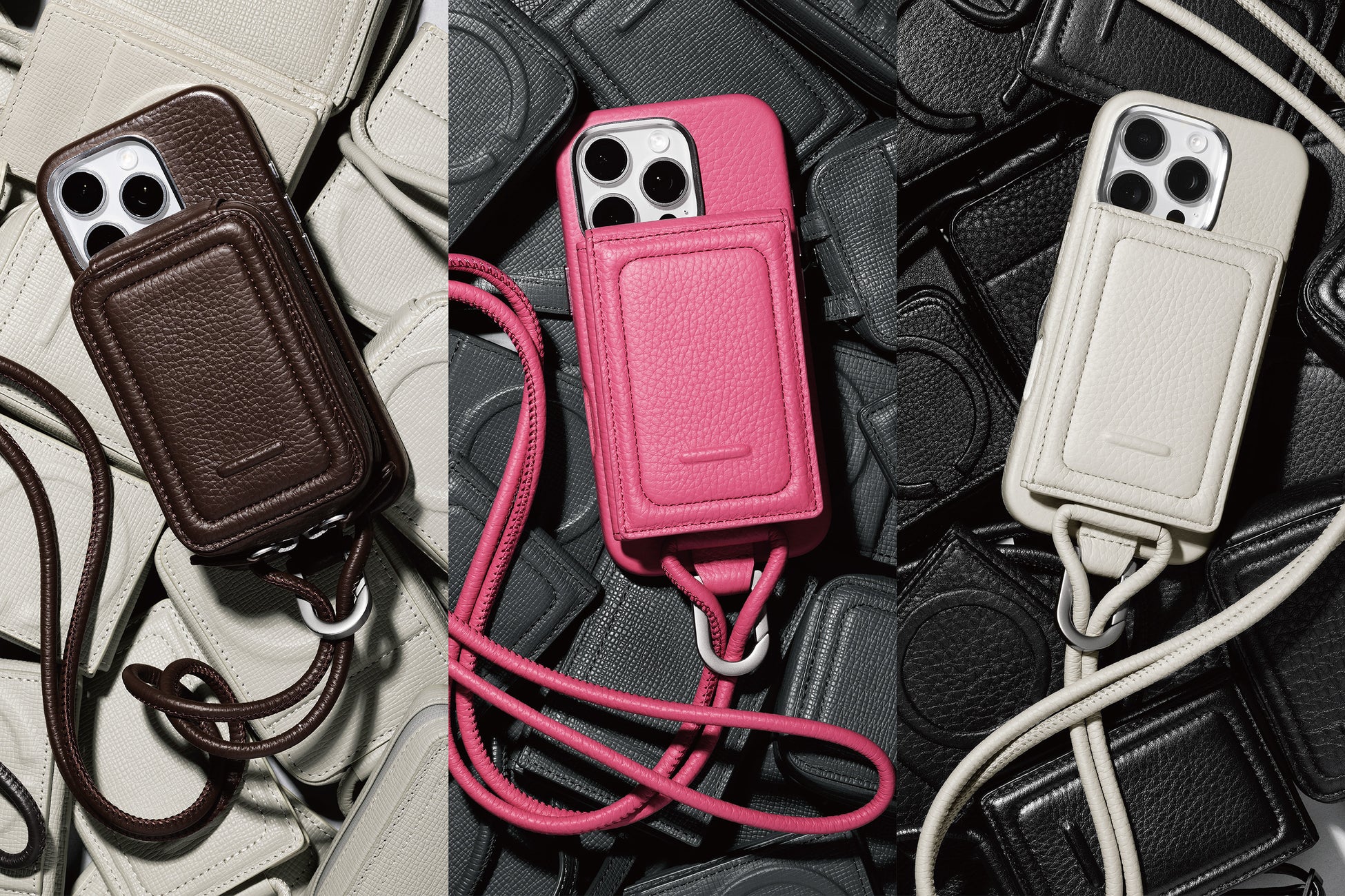 美しく快適な移動を可能にするウェアラブルなiPhoneケース。上質なレザーで仕立てた「カラビナ付iPhoneケース」に、3種類の「レザーストラップ付iPhoneアクセサリー」を組み合わせることで、iPhone本体にカードケースや財布、ポーチの利便性を拡張させたスマホショルダーとしてご使用いただけます。