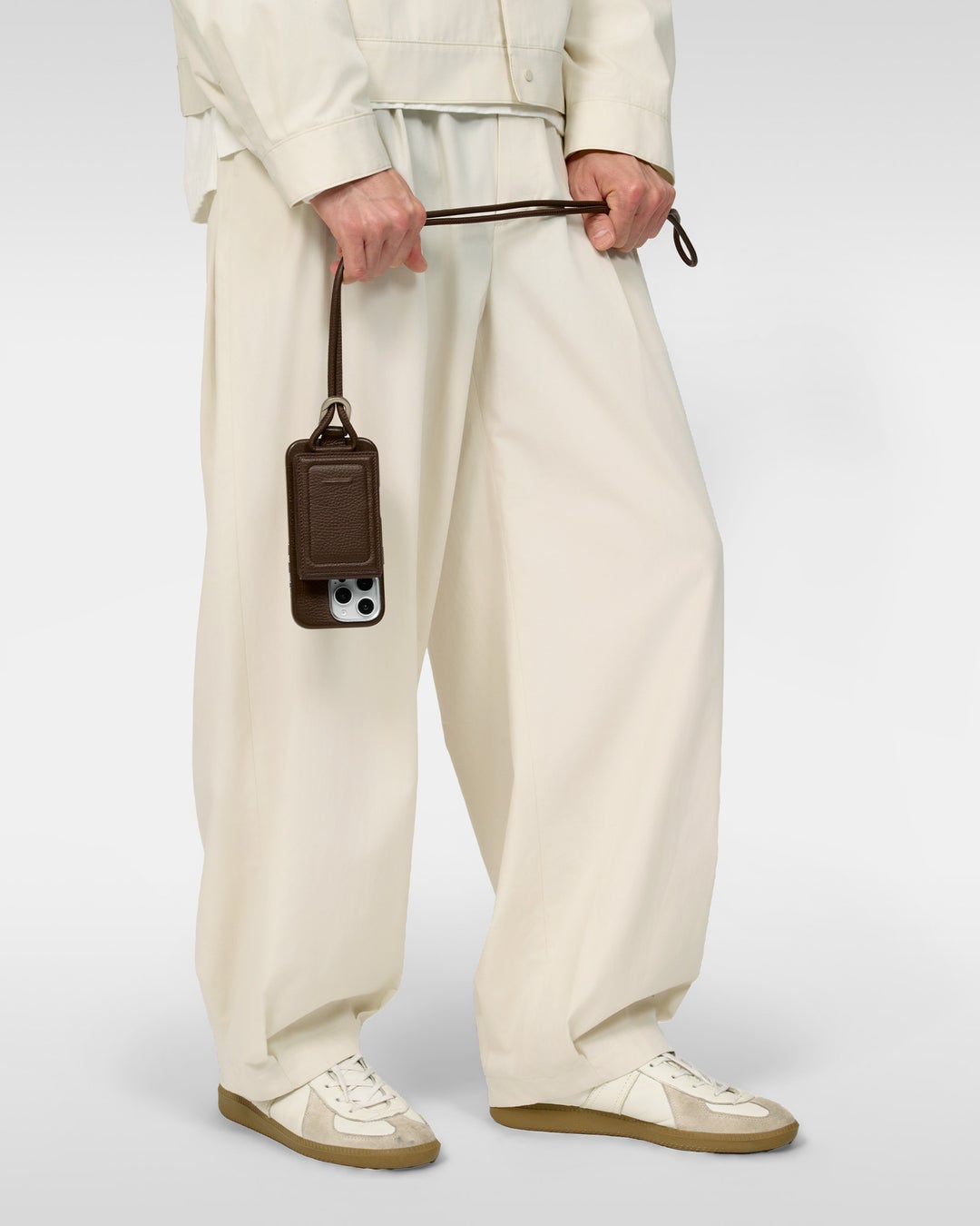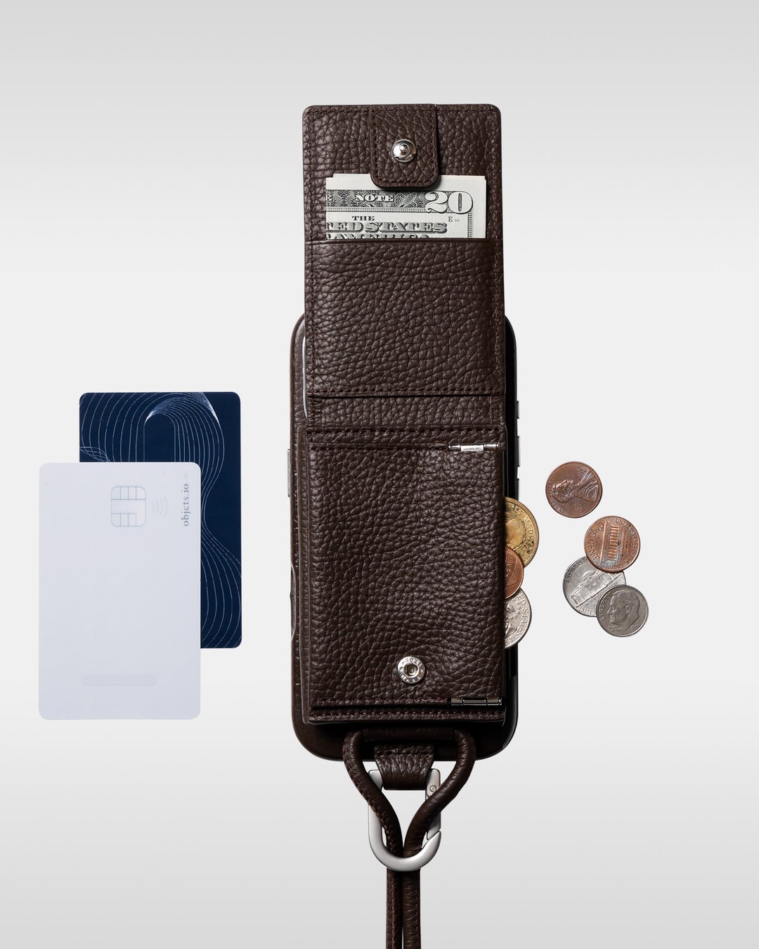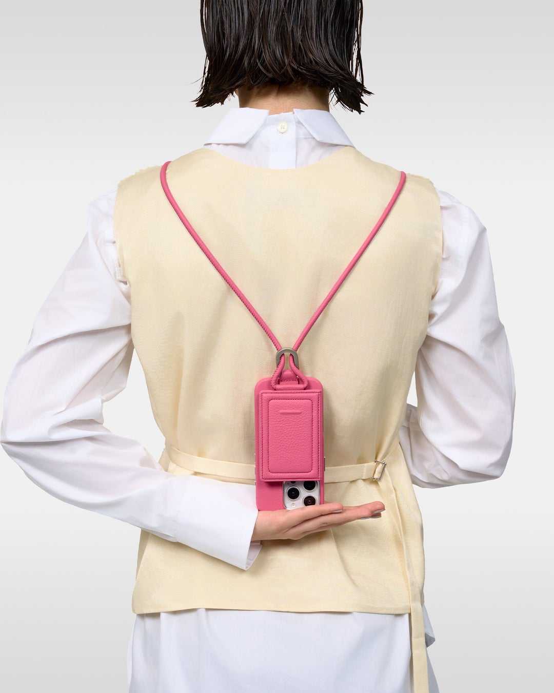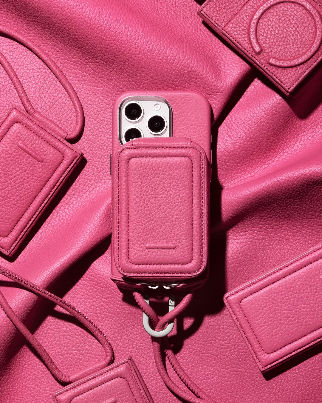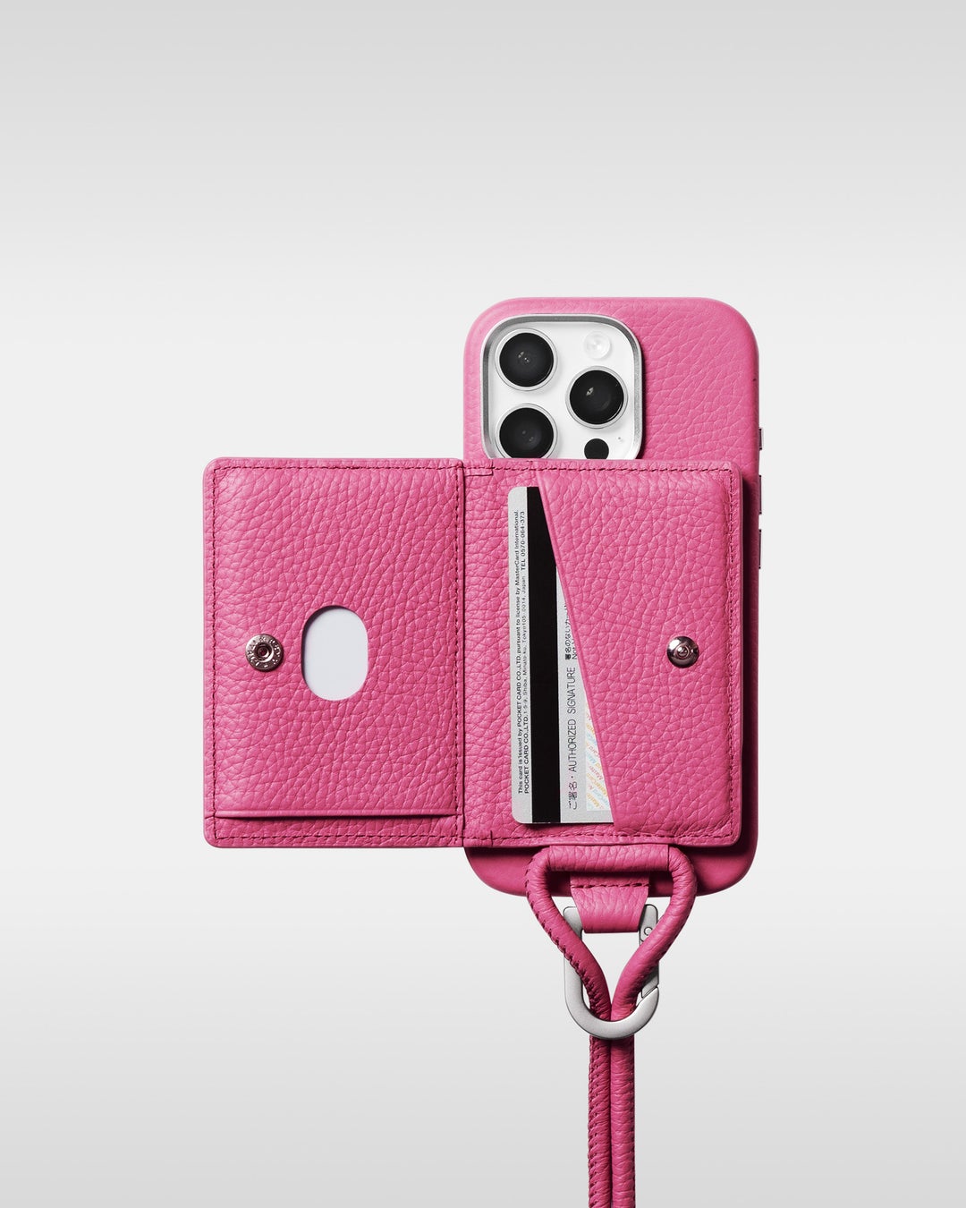 美しく快適な移動を可能にするウェアラブルなiPhoneケース。上質なレザーで仕立てた「カラビナ付iPhoneケース」に、3種類の「レザーストラップ付iPhoneアクセサリー」を組み合わせることで、iPhone本体にカードケースや財布、ポーチの利便性を拡張させたスマホショルダーとしてご使用いただけます。