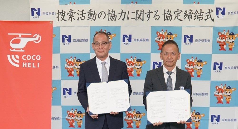 山や海での行方不明者の位置を特定する捜索サービス「ココヘリ」を運営するAUTHENTIC JAPAN株式会社(本社:福岡市中央区、代表取締役社長:久我 一総 以下、当社)は、奈良県警察と「捜索活動の協力に関する協定」を締結し、2024年11月5日(火)に締結式を行いました。