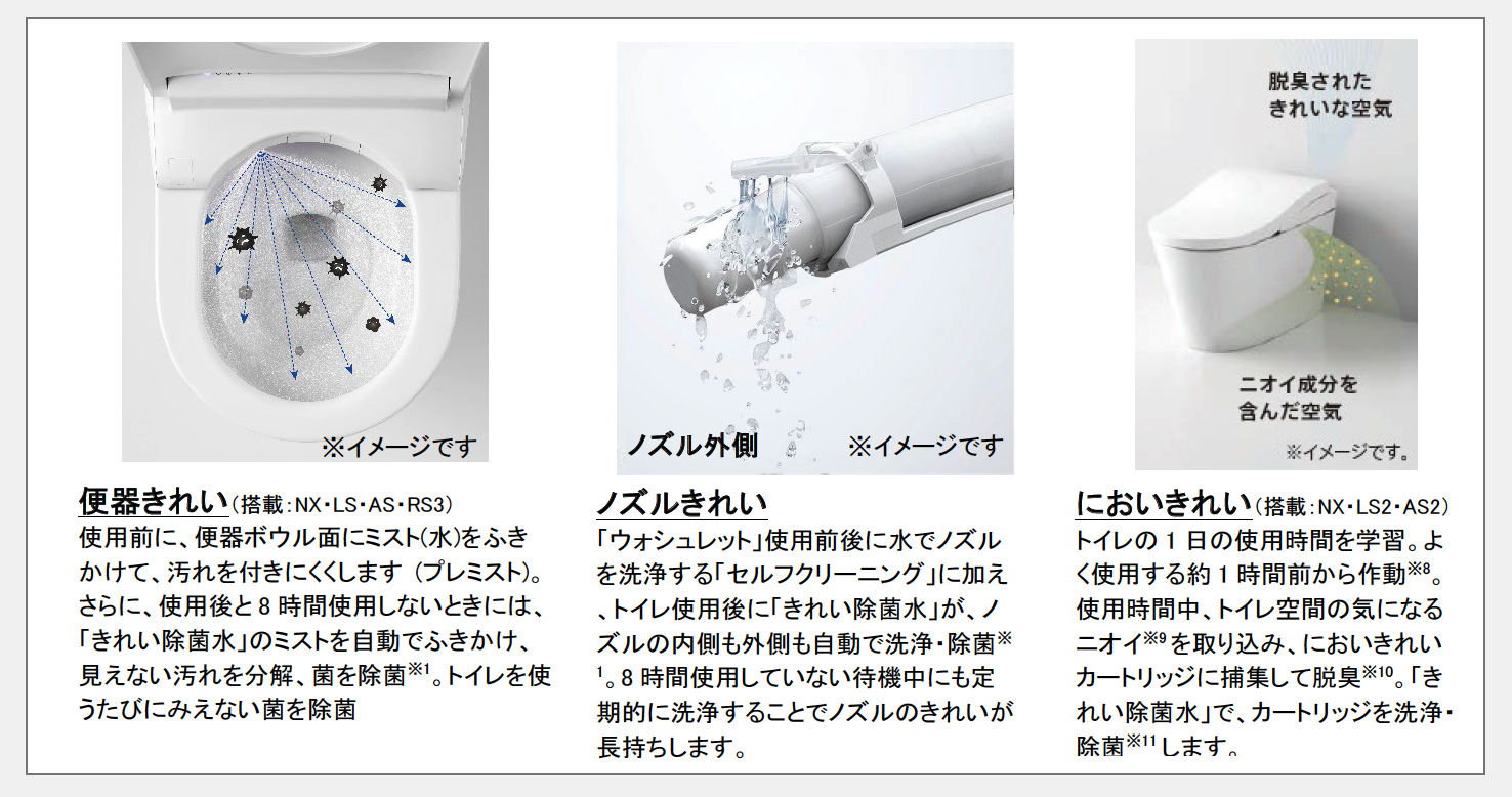 テクノロジー:新機能「便座きれい」(搭載:NX・LS2・AS2)