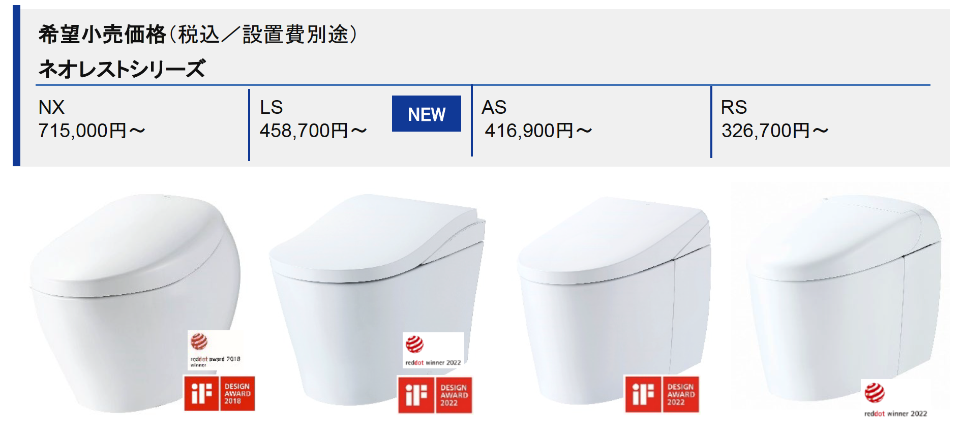 TOTO株式会社(本社:福岡県北九州市、社長:清田 徳明)は、8月より順次、国内向け主力水まわり新商品を投入します。ウォシュレット(*1)一体形便器ネオレストはグローバル統一モデルとして新たに「LS」を加えて品揃えを拡充、全タイプをモデルチェンジします。日本国内では2022年8月1日(月)4タイプ同時発売し、世界各地でも順次発売します。