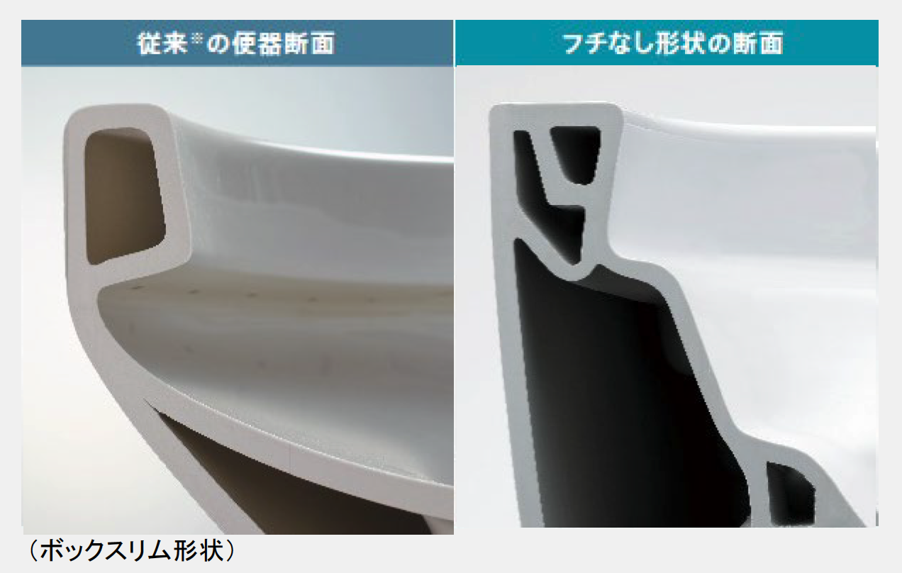 また、便器部に継ぎ目がないフルスカート形状。ウェーブラインを描くフタは真横から見ても美しいサイドビューを備えており、バスルームやトイレ空間を、より広く、豊かに演出します。グローバルに自信をもって提案できるデザインです。