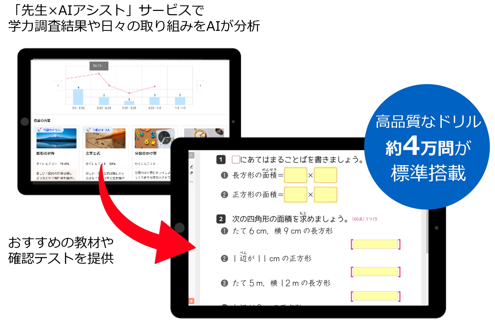 教育現場ではGIGAスクール構想によりデジタルドリルの導入は進んだものの、選択式問題が多いことや問題数が十分でないことなどから、十分な利活用がされていないことが課題となっています。