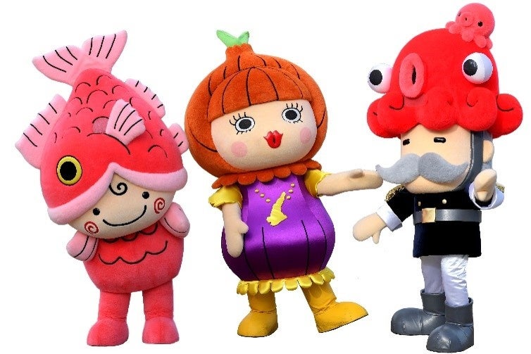 左から、たい坊やん、淡路タマ子さん、オクトパス将軍