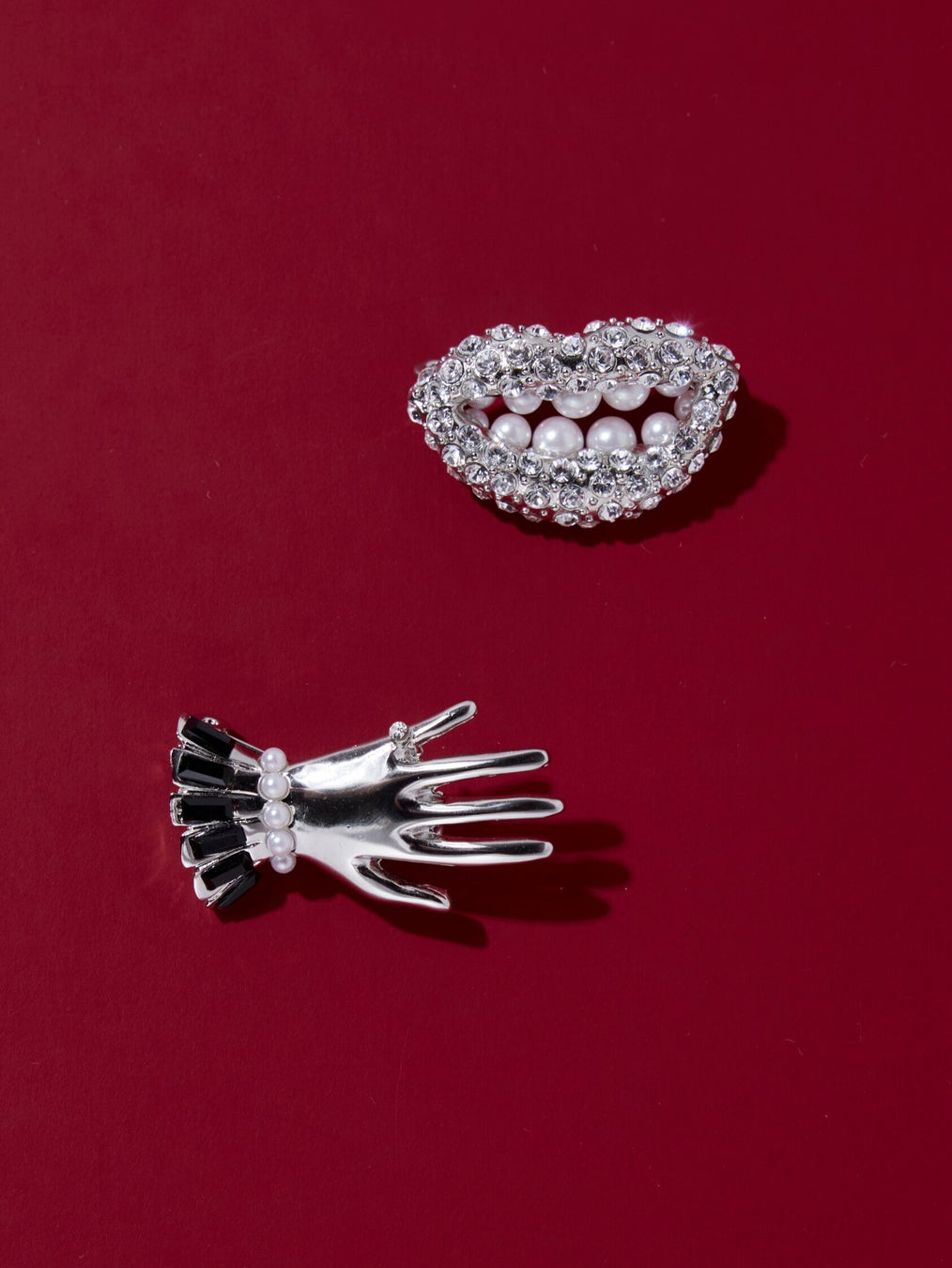 lady hand brooch/silver × laugh brooch/silver