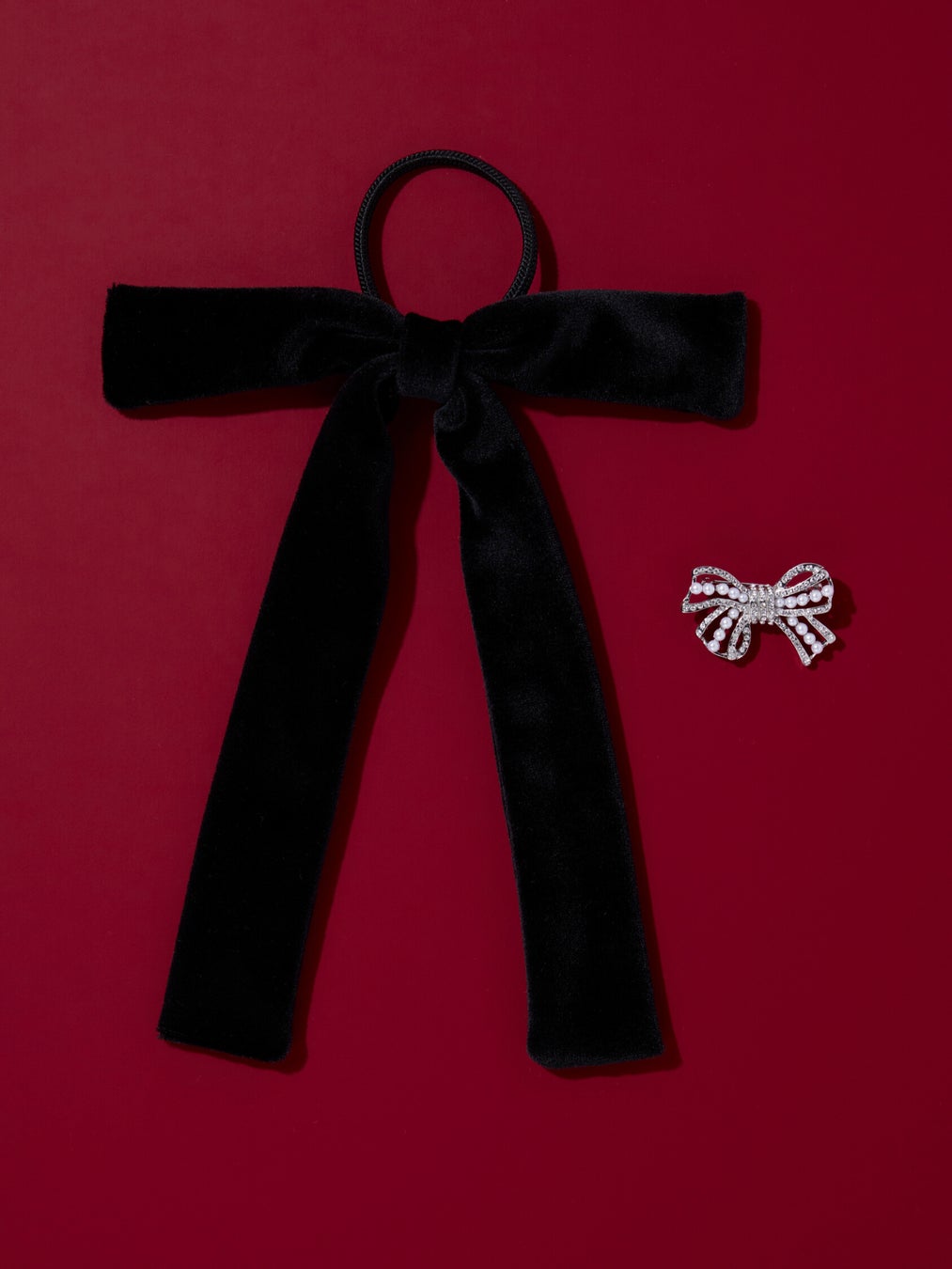 bow brooch/silver × opera pony/black