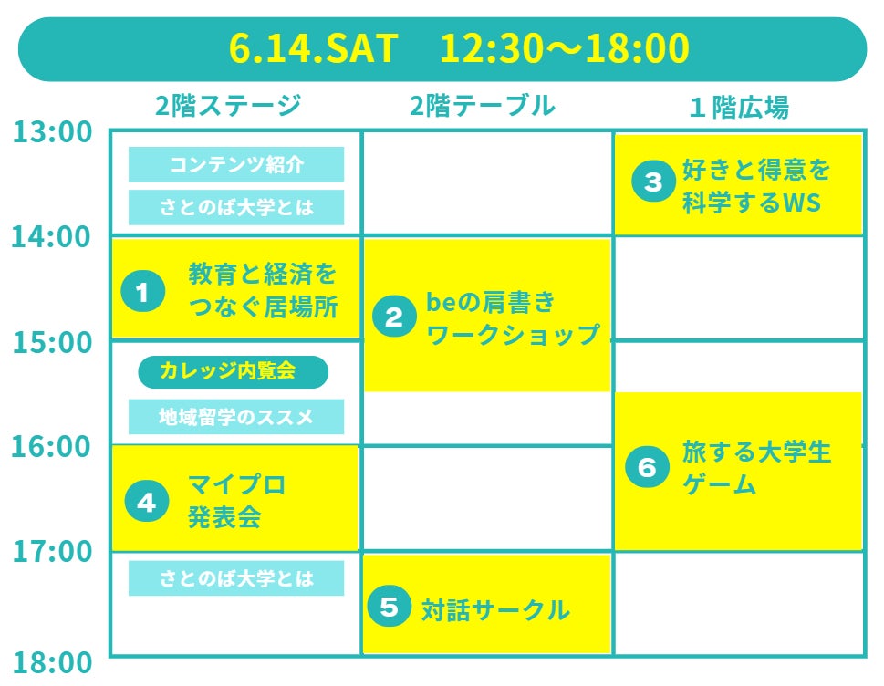 地域を旅する大学 さとのば大学(運営:株式会社アスノオト 代表取締役:信岡良亮、所在地:東京都千代田区、以下当社)は、高校生の”自分らしい”進路選択を応援するイベント、「進路フェス」を6月14日(土)~15日(日)シモキタカレッジにて初開催いたします。また、大阪会場は6月21日(土)グランフロント大阪内、ナレッジキャピタルにて開催決定いたしました。ロールモデルとなる起業家たちによるトークセッションの他、自己理解を深めるワークショップ、多様な生き方を選ぶ社会人や大学生との交流機会を設け、視野を広げると共に自分に合った進路選択を後押しします。