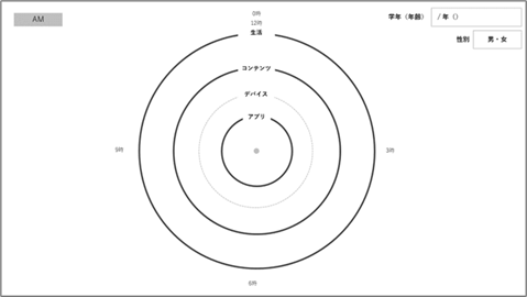 今回のモデル開発にあたっては、約50名のZ世代学生に協力いただき、1日の生活行動と並行的に動いている「コンテンツ/デバイス/アプリ」を可視化できる独自開発の「ながら行動実態シート」の活用と、その記入内容をZ世代自らが本人たちの目線で分析する「Z世代自己考察ワークショップ」を実施することで、表面的な行動スケジュールからではわからない”ながら行動”の背景にあるインサイトをとらえていきました。