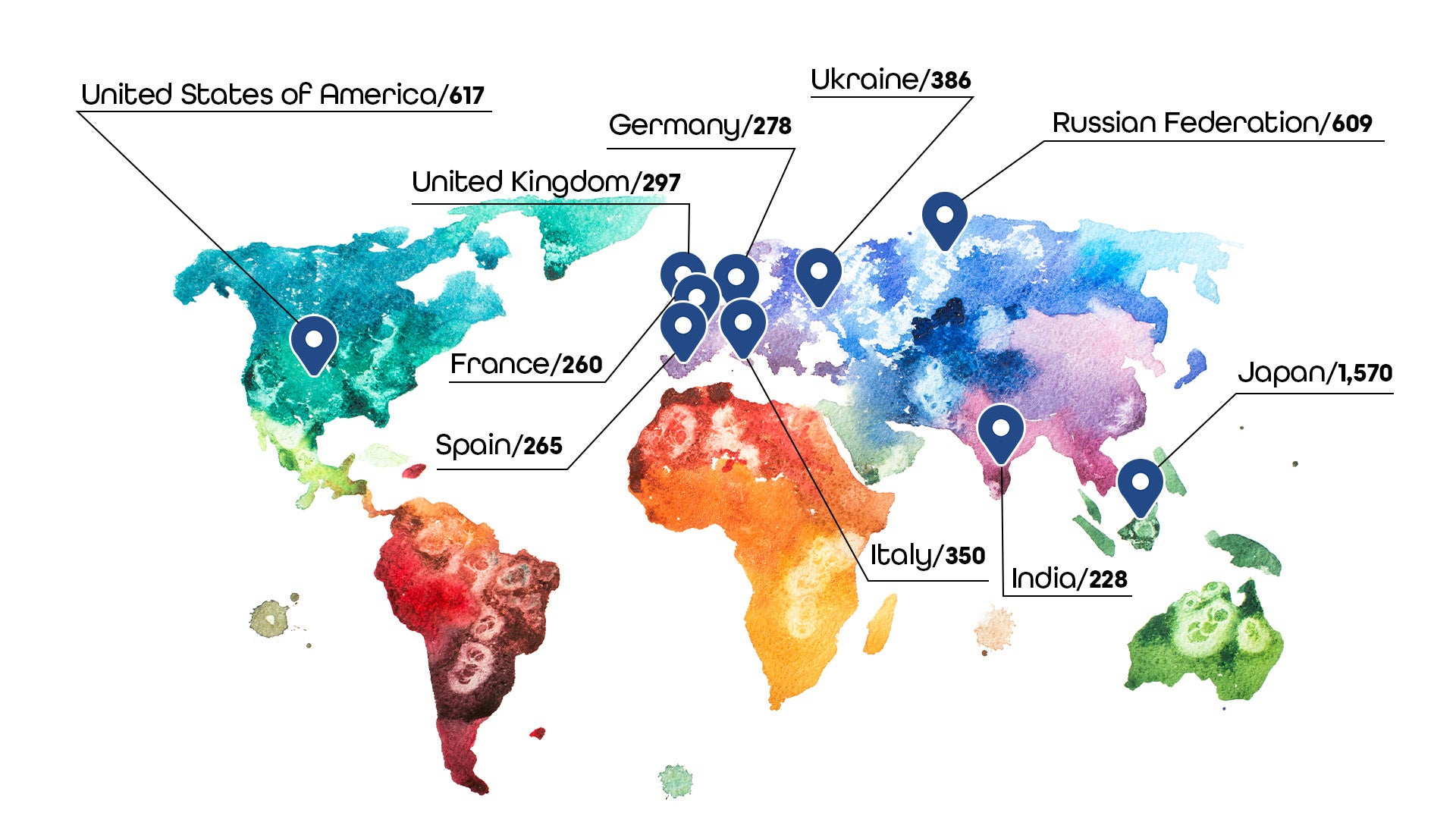 2023年4月現在、トライセラアートは国連加盟国の64%にあたる126か国の作家を扱うプラットフォームに成長しました。また、日本を除く国別登録作家数をみてみると、第一位はアメリカ、第二位はロシア、第三位はウクライナとなっています。人口の多い、アメリカ、ロシアに次ぎ(*1)、ウクライナ作家の登録が増えた背景には、昨年3月に当社で実施したしたウクライナ在住のアーティストを支援するプロジェクト実施(*2)を契機に、ウクライナ国内での当サービスの認知拡大に繋がりました。