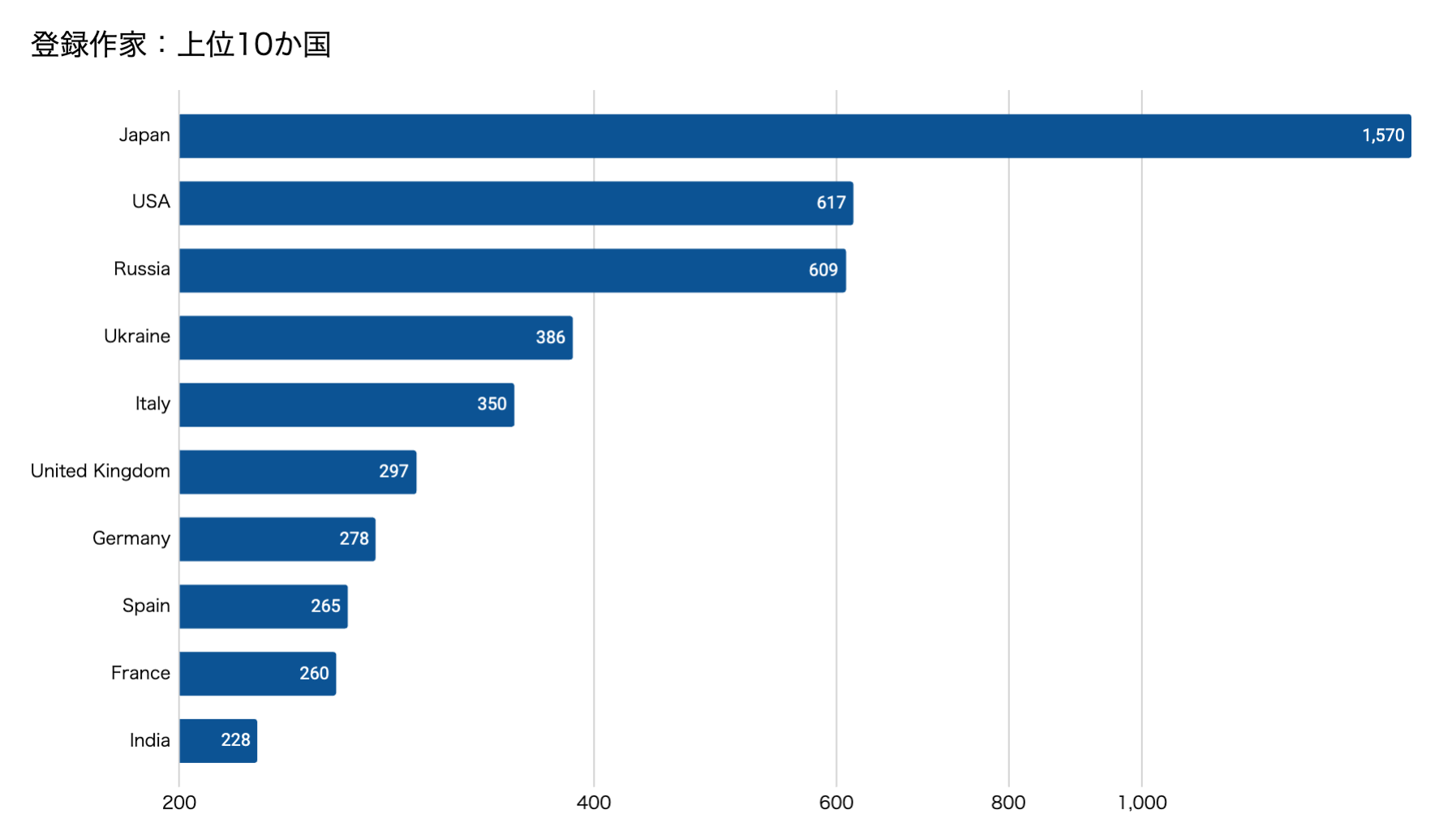 2. 世界126か国の作家登録状況(国別の上位10か国)