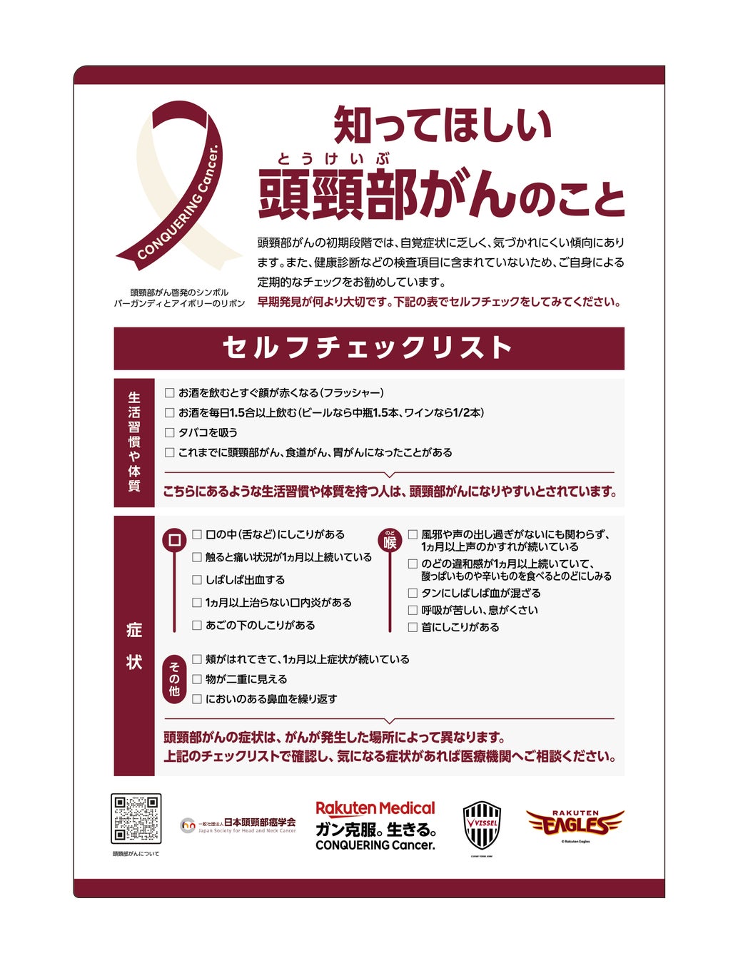 日本頭頸部癌学会と楽天メディカル、5月15日のヴィッセル神戸公式戦で疾患啓発イベント「楽天メディカル 頭頸部(とうけいぶ)がん克服デー」を共催、抽選で25組50名をご招待