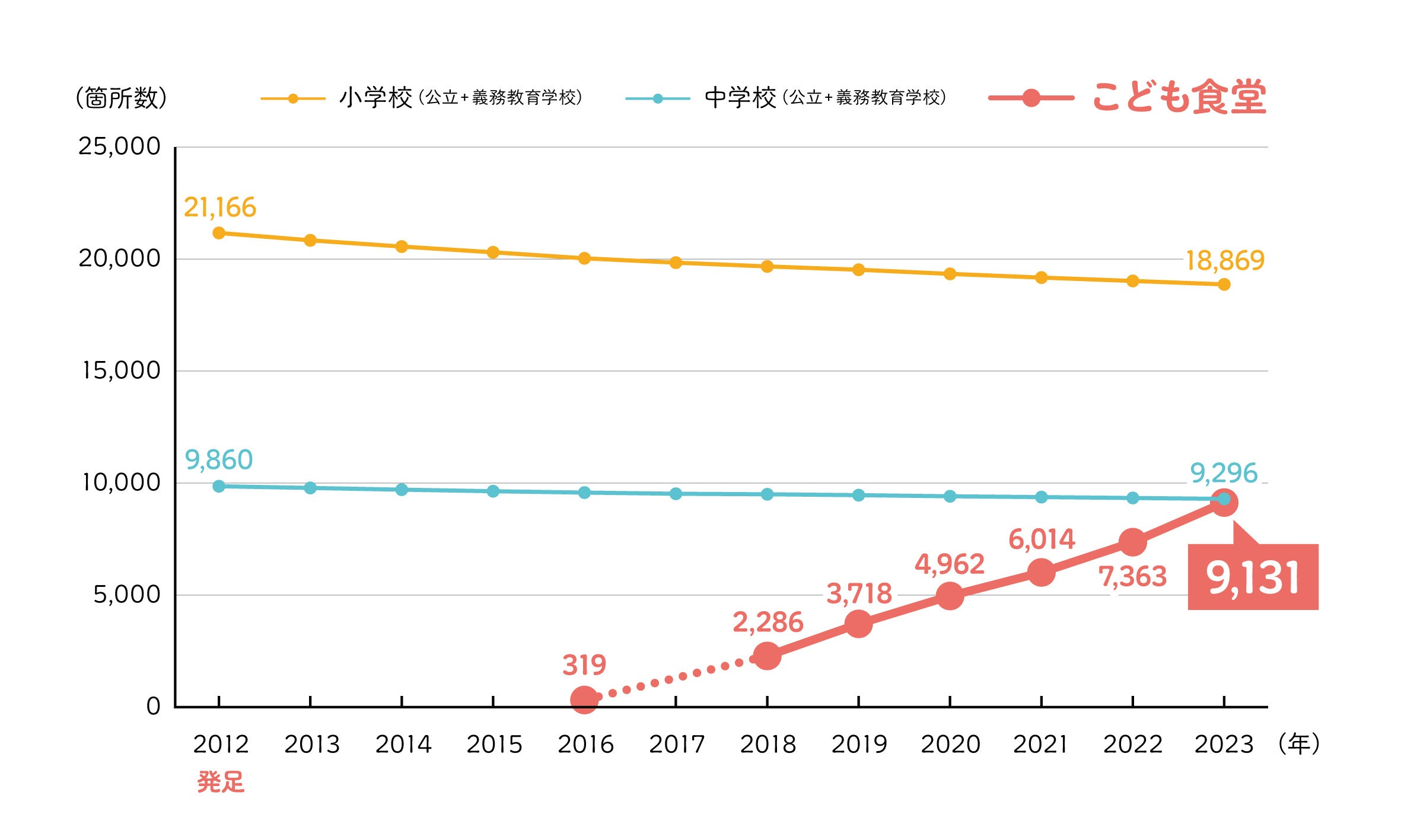 こども食堂の数、全国の公立中学校数とほぼ並ぶ「9,131箇所」に増加 ~2023年度こども食堂全国箇所数調査結果を発表~(2023年12月速報値)