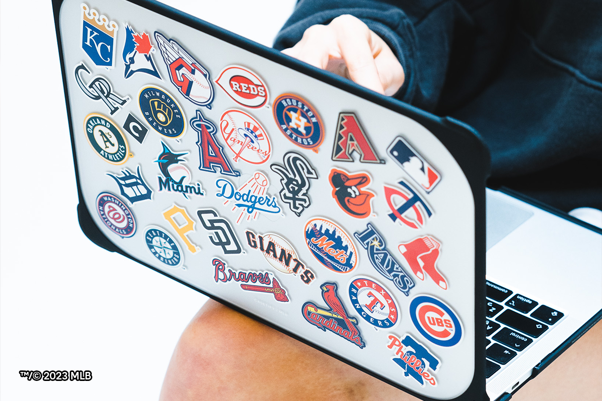 4チームのジャージーやベースボールキャップに配したエンブロイダリーロゴをイメージしたアートワークの他、MLB全30チームのロゴをあしらったステッカーデザインなど5種類で展開。