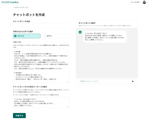 「ACES ChatHub」は、入力した情報が学習に利用されることなくChatGPTをセキュアな環境でご利用いただける法人向けチャットボットAIプラットフォームです。