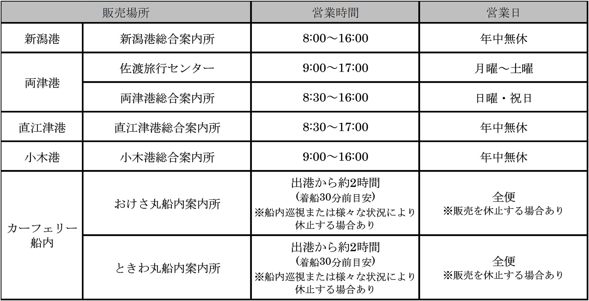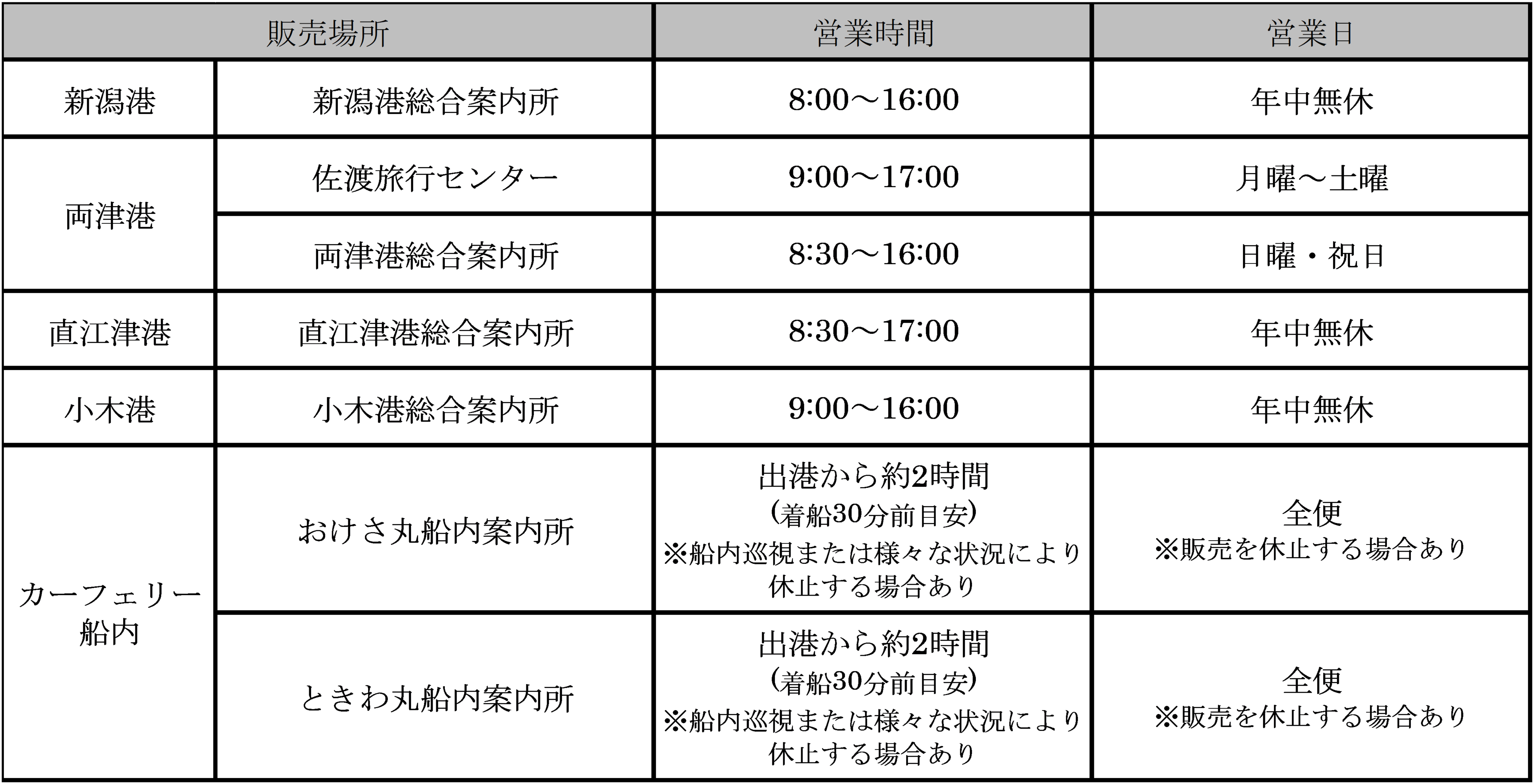 ・佐渡汽船での取り扱いは現金のみです。クレジットカード、電子マネー等は対応しておりません。