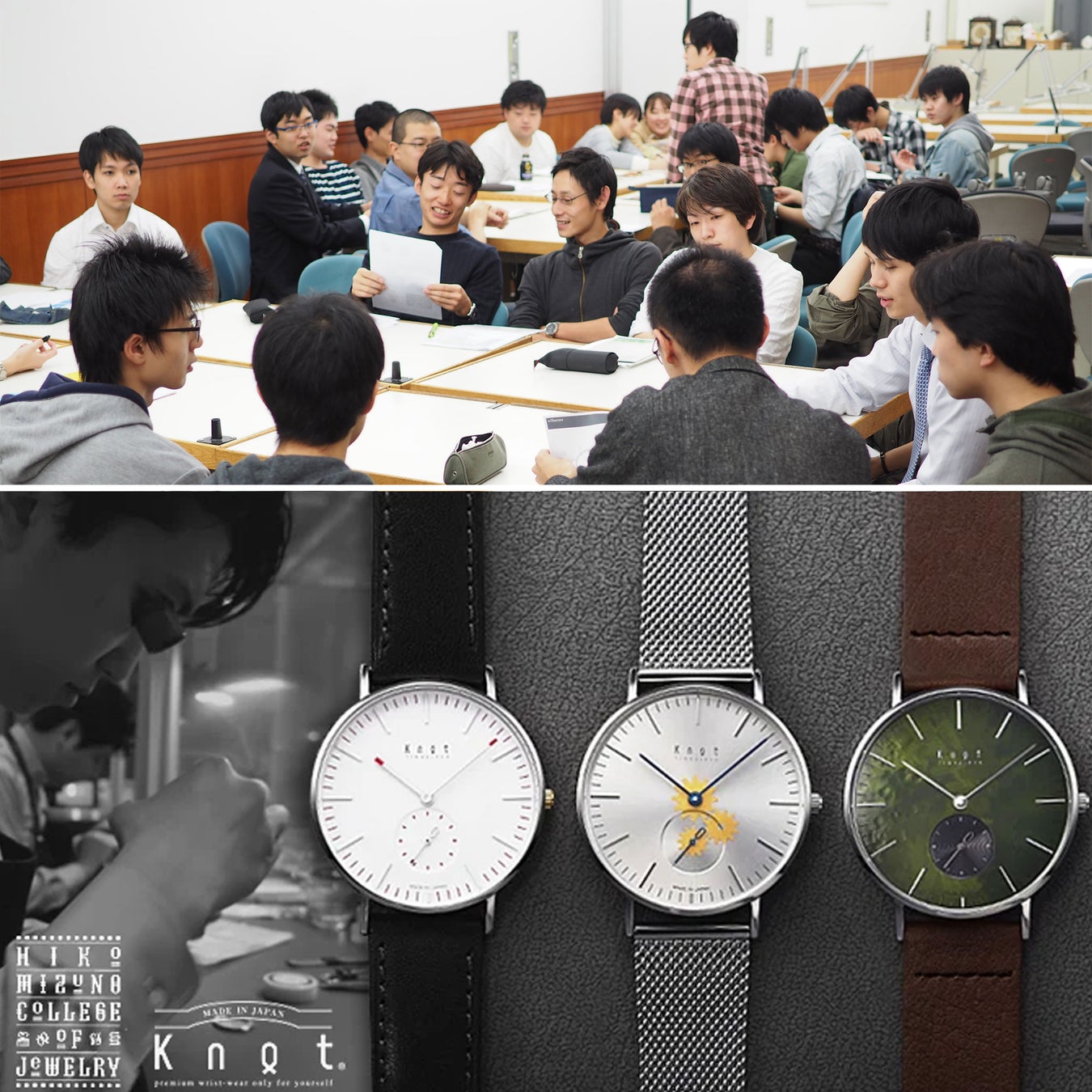 プロジェクトは、2016年末〜2017年春にかけてヒコ・みづのジュエリーカレッジとKnotによって開催した文字盤意匠コンテストの優秀作品を限定生産し、リターンとしました。結果は、目標金額の300万円を大きく上回る約450万円の応援をいただき、運営費、開発費、製造原価や、手数料などを差し引いた支援額の全額を同校へ寄付させていただきました。