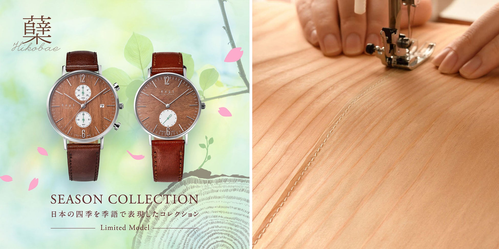 2024年2月29日、数量限定のシーズンコレクションとして発売した「蘖(ひこばえ)」は、株式会社谷口(石川県金沢市〇〇町)が開発した「縫える木」をフェイスに用いて実現したモデルです。