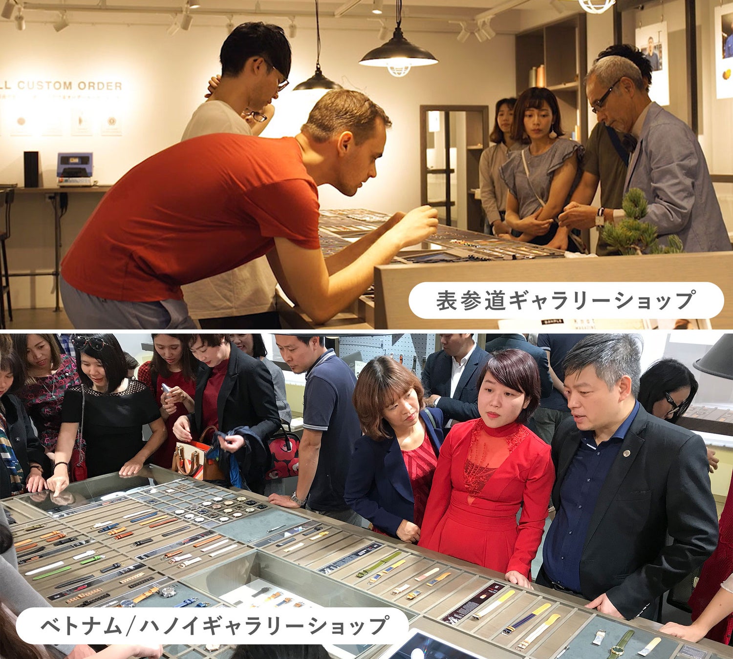 実際に製品を手に取ってカスタムオーダー体験を楽しんでいただく為のギャラリーショップ(=直営店)を全国に出店してまいりました。これまで直営店舗は国内外に約20店舗誕生。お客様から「楽しい」の声を聞くことができる体験型の店舗です。