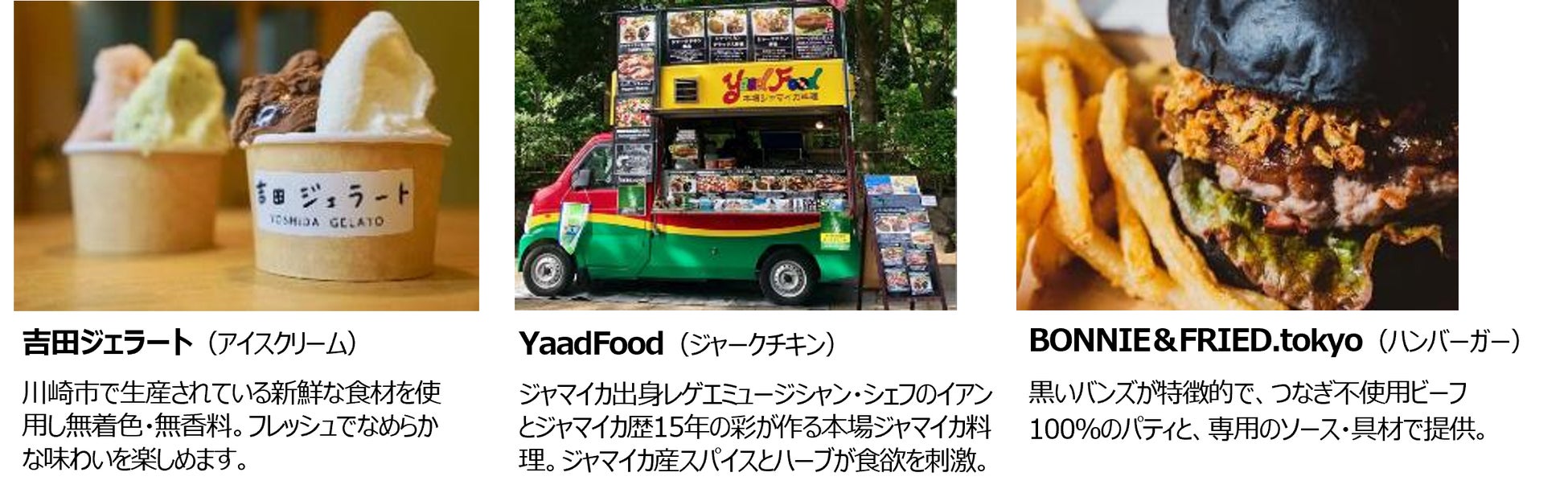 今年は、初夏の日差しの中でのランチに最適なピザや、ホットサンド、カレー、スパイスチキンなど全12店舗が出店します。隣接したライブステージを眺めながら、美味しいフードやドリンクを楽しむことができます。