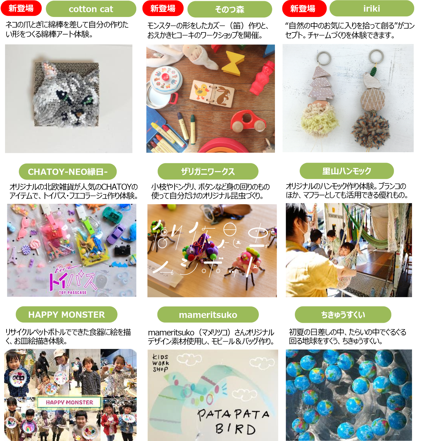 - 特長①:昨年1番人気の「ぼうけんガチャ」の他、「フィッシングパーク」や「モンスターズ フォトスポット」が新登場