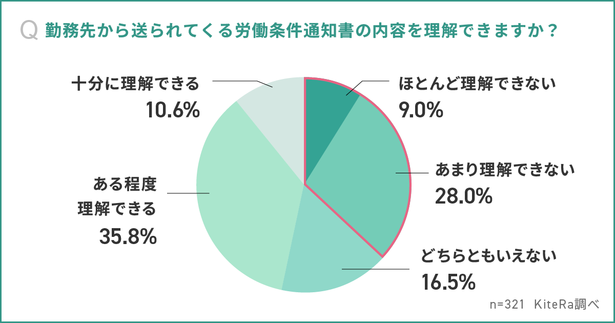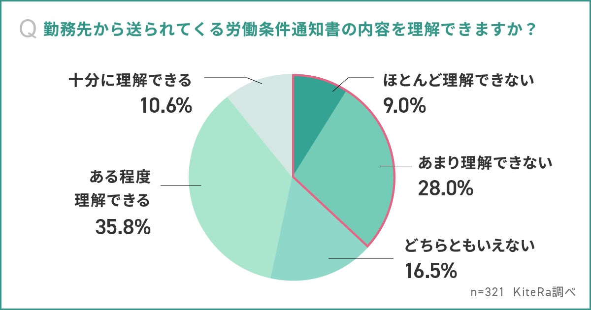 労働条件通知書が送られて来なかった経験がある人が5割以上いる一方で1割弱が全く読まず3割以上が内容を理解できないと回答。スキマバイトに関する社内ルールの整備など受け入れる企業側の対応が求められる結果に