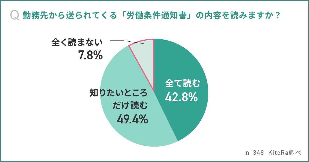 ③仕事を開始する前に、労働条件通知書の内容を全く読まない人は7.8%。