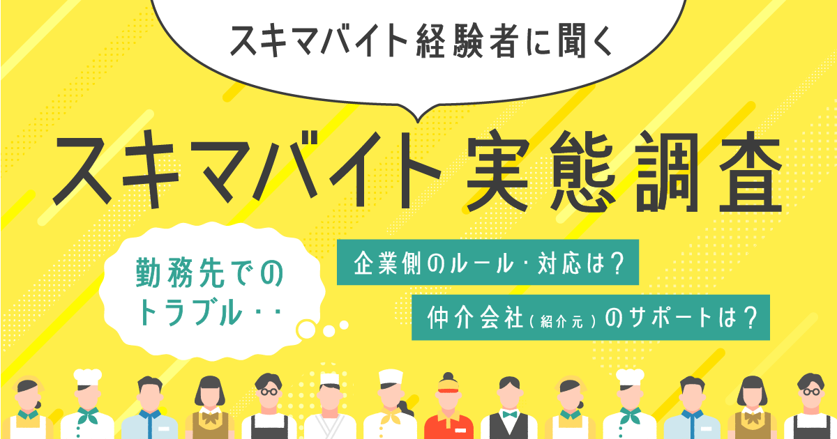 しかし、今回の調査結果では約半数が勤務先でトラブルを経験していることや、トラブルに遭遇した際の相談先を把握していないことなど、企業だけでなく仲介会社(紹介元)のスキマバイトに対するサポート体制が追い付いていない実態が明らかとなりました。