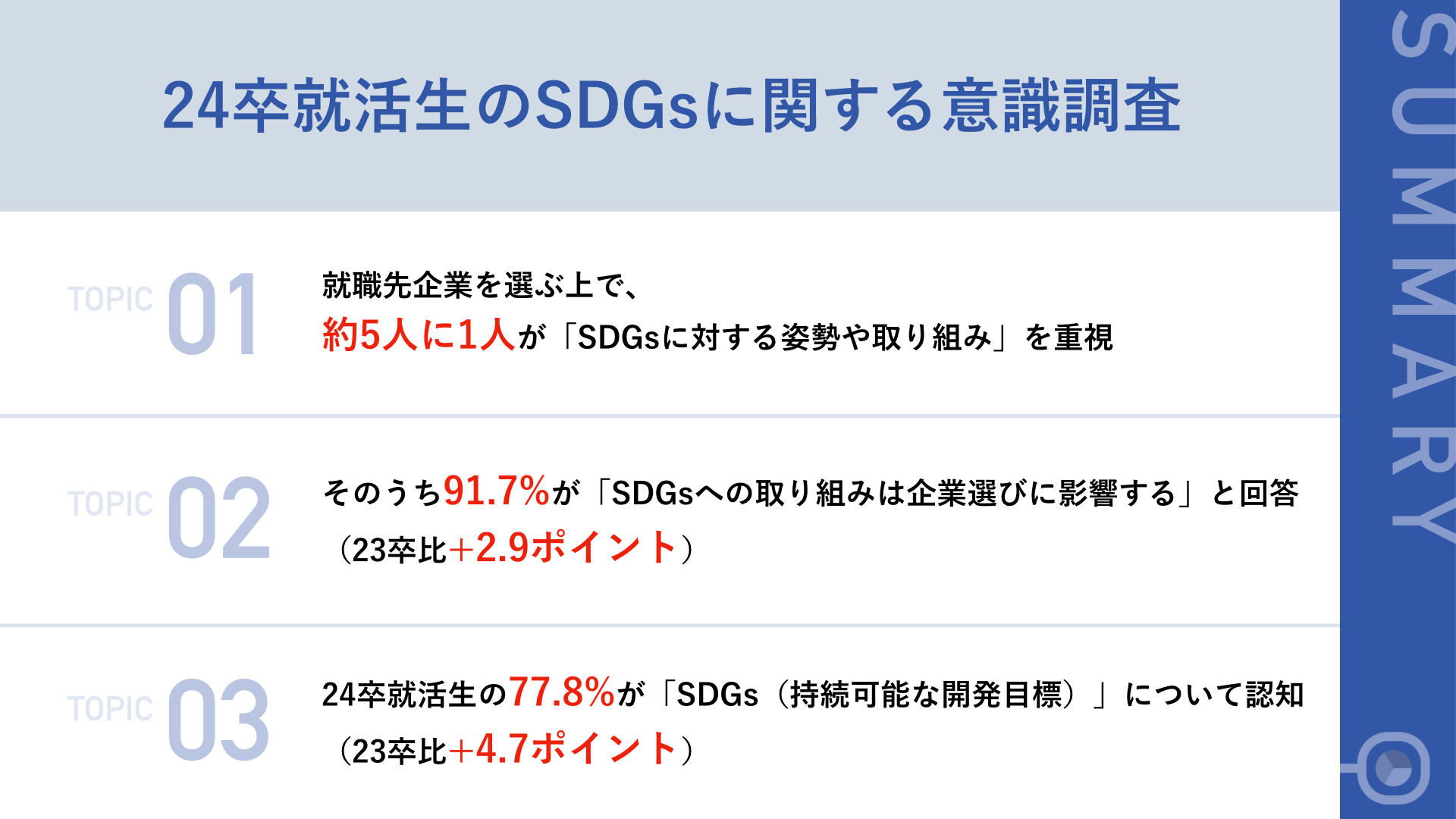 24卒就活生の77.8%が「SDGs」について認知(23卒比+4.7ポイント)