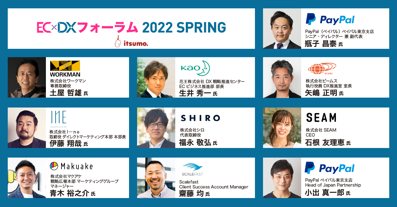花王、ワークマン、ビームス、PayPal、マクアケ、I―ne、SHIROなど、豪華ゲストが登壇。いつも主催【EC×DXフォーラム 2022 SPRING】開催