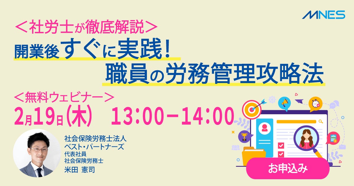 2/19(木)13時〜「<社労士が徹底解説>開業後すぐに実践!職員の労務管理攻略法」セミナーを開催