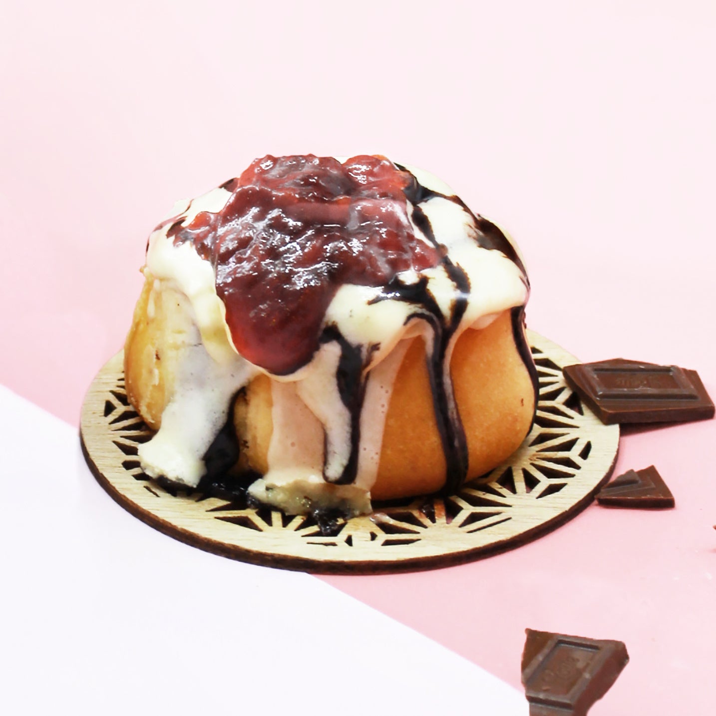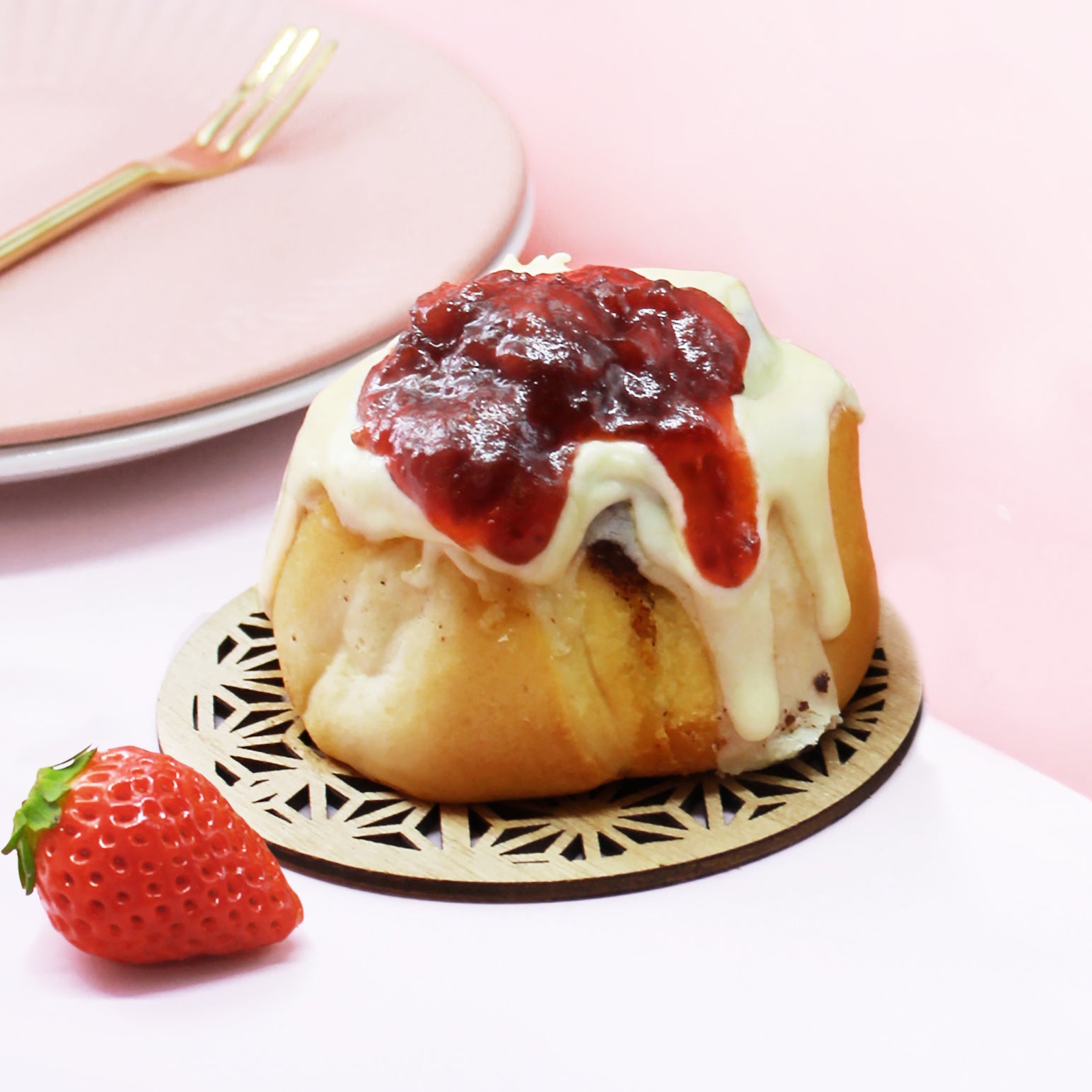 ミニボンクラシックにごろっと果肉が入ったやさしく甘酸っぱいいちごのコンフィチュールをトッピングしました。 甘酸っぱいいちごと相性の良いシナモンのハーモニーをお楽しみください。