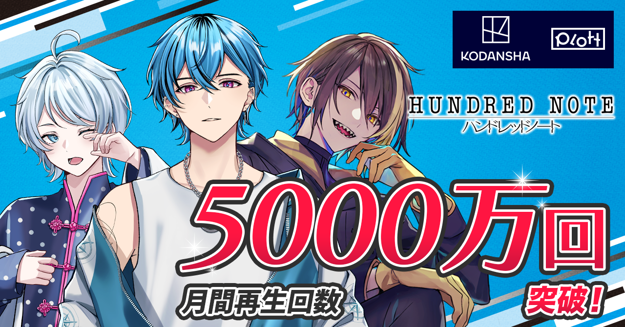 『ハンドレッドノート』は2023年5月からスタートした「新時代の名探偵プロジェクト」です。講談社と、YouTube・TikTok発信のIPコンテンツ創出に強みをもつPlottがタッグを組んでお届けする 『ハンドレッドノート』のYouTubeチャンネルは視聴者からの支持を受け、リリースから3.5ヶ月で月間5,000万再生を突破しています。
