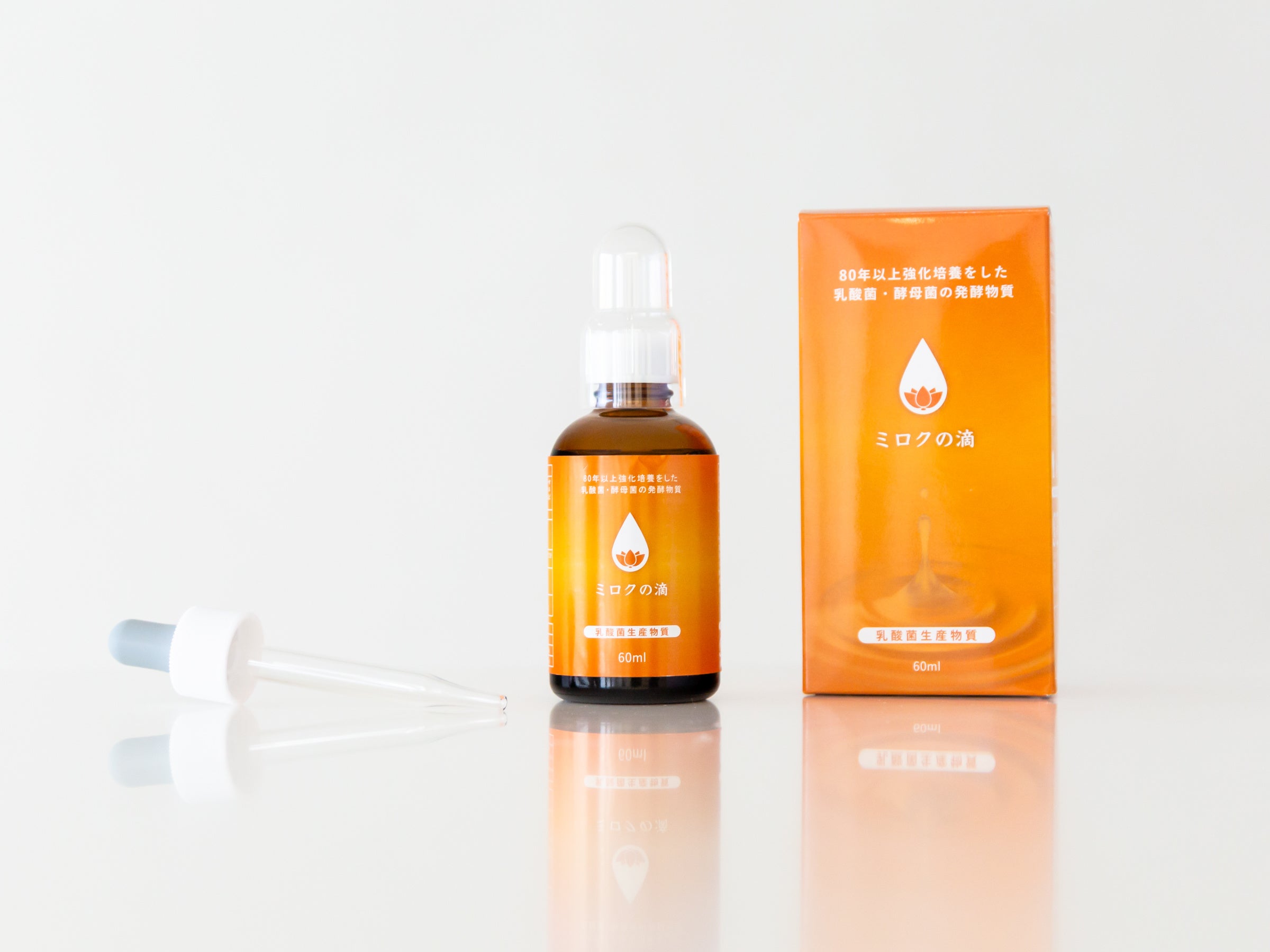 貴重な乳酸菌生産物質(バイオジェニックス)を高濃度で配合することにこだわって作ったのが、健康飲料「ミロクの滴」です。強化培養された菌はサバイバル能力にすぐれているので、健康と美容にもしっかりとアプローチします。「腸内フローラ」という言葉もすっかり浸透しましたが、健康にとって腸内環境のバランスは何よりも大切です。乳酸菌生成物質は、ほかの種類の乳酸菌との相性・年齢や性別も問わず、どんな方の健康もサポートできるのが強みです。毎日のお腹スッキリや、内側からの美肌づくりにもお役立てください。