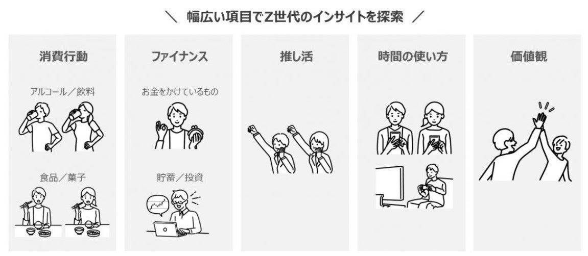 日本インフォメーションでは、 「Z世代」のインサイトに近づくべく、幅広い項目(※1)について意識や行動に関して聴取するインターネット調査を行いました。