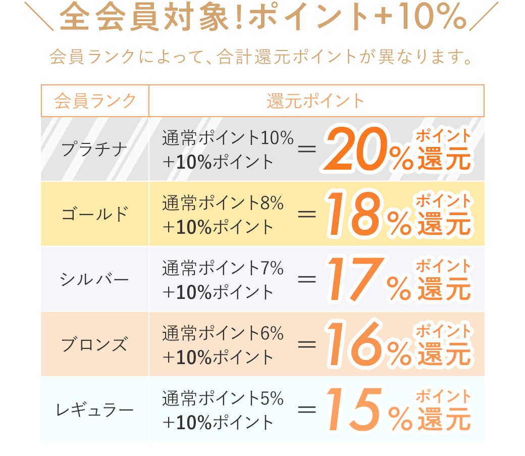 全会員様ポイント+10%還元のポイントアップキャンペーンを開催いたします。