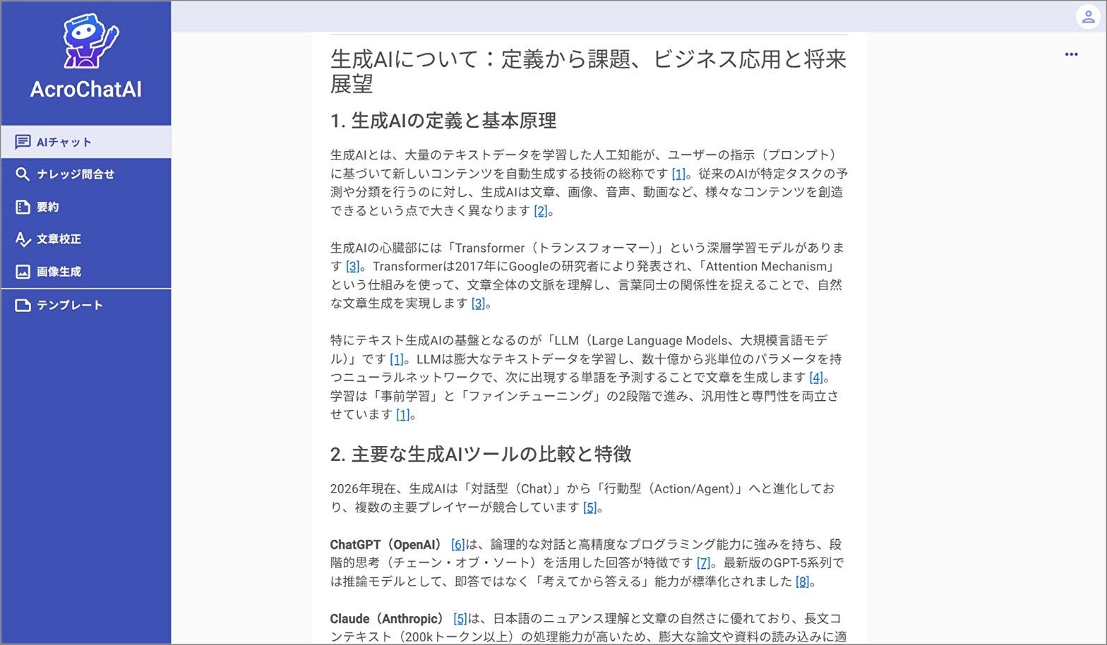 アクロクエストテクノロジー株式会社(本社:神奈川県横浜市・代表取締役:新免流、以下、アクロクエスト)は、法人(エンタープライズ)向け生成AIアシスタント『AcroChatAI』において、AIエージェント対応を強化した新バージョンの提供を開始いたしました。