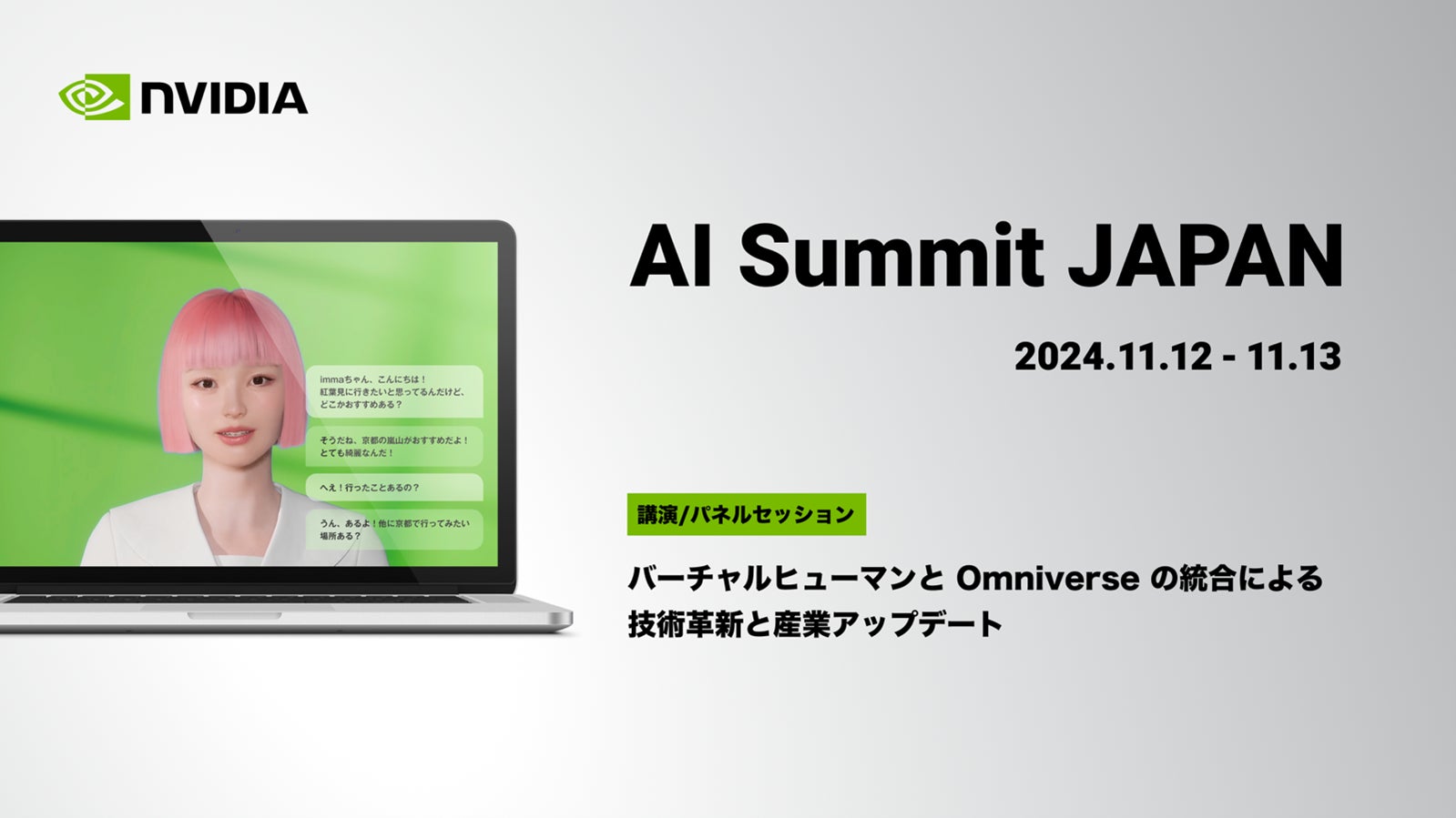 また会場内のNVIDIA社展示ゾーンにて、日本語実装した「AI imma」を初披露いたします。