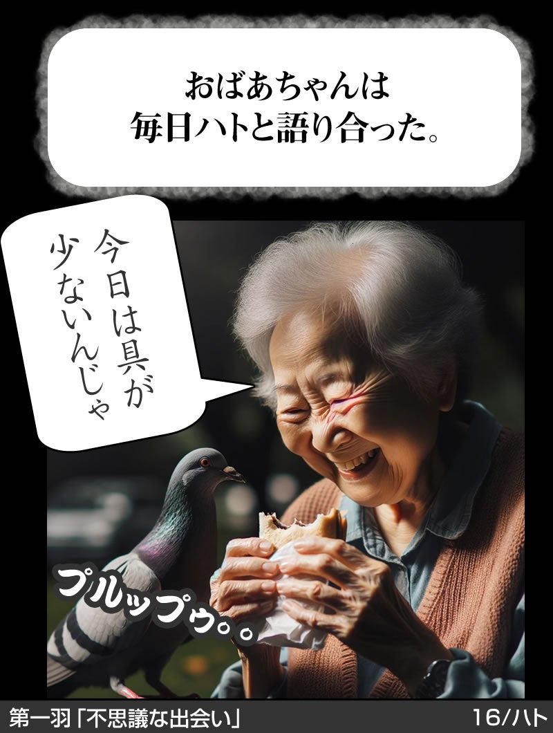 今回ハトをテーマにしたマンガということでハトの魅力を存分におつたえする為、おばあちゃんやおじいさんを多数登場させハトの魅力を引き立てました。