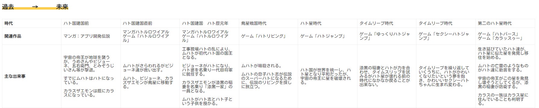 ゲーム「ハトルロワイアル」のストーリー全貌が遂に明らかに!!おまけコンテンツとして、ゲームの舞台となる「鳥星」の年表も公開