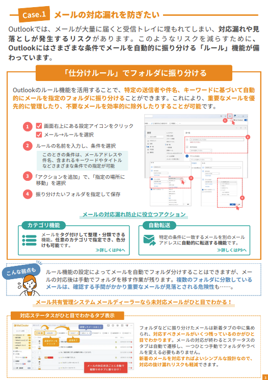 本資料では、GmailやOutlookの便利機能だけでなく、できないことやよくある課題もあわせて掲載しております。以下、資料より一部抜粋してご紹介します。