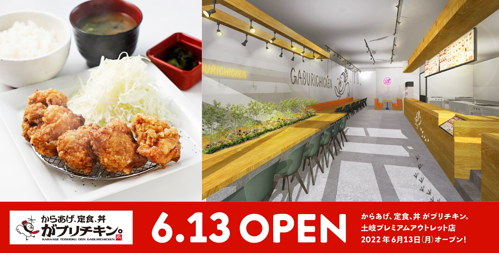 【がブリチキン。】新業態岐阜県初出店「からあげ、定食、丼 がブリチキン。土岐プレミアムアウトレット店」が6月13日(月)グランドオープン !